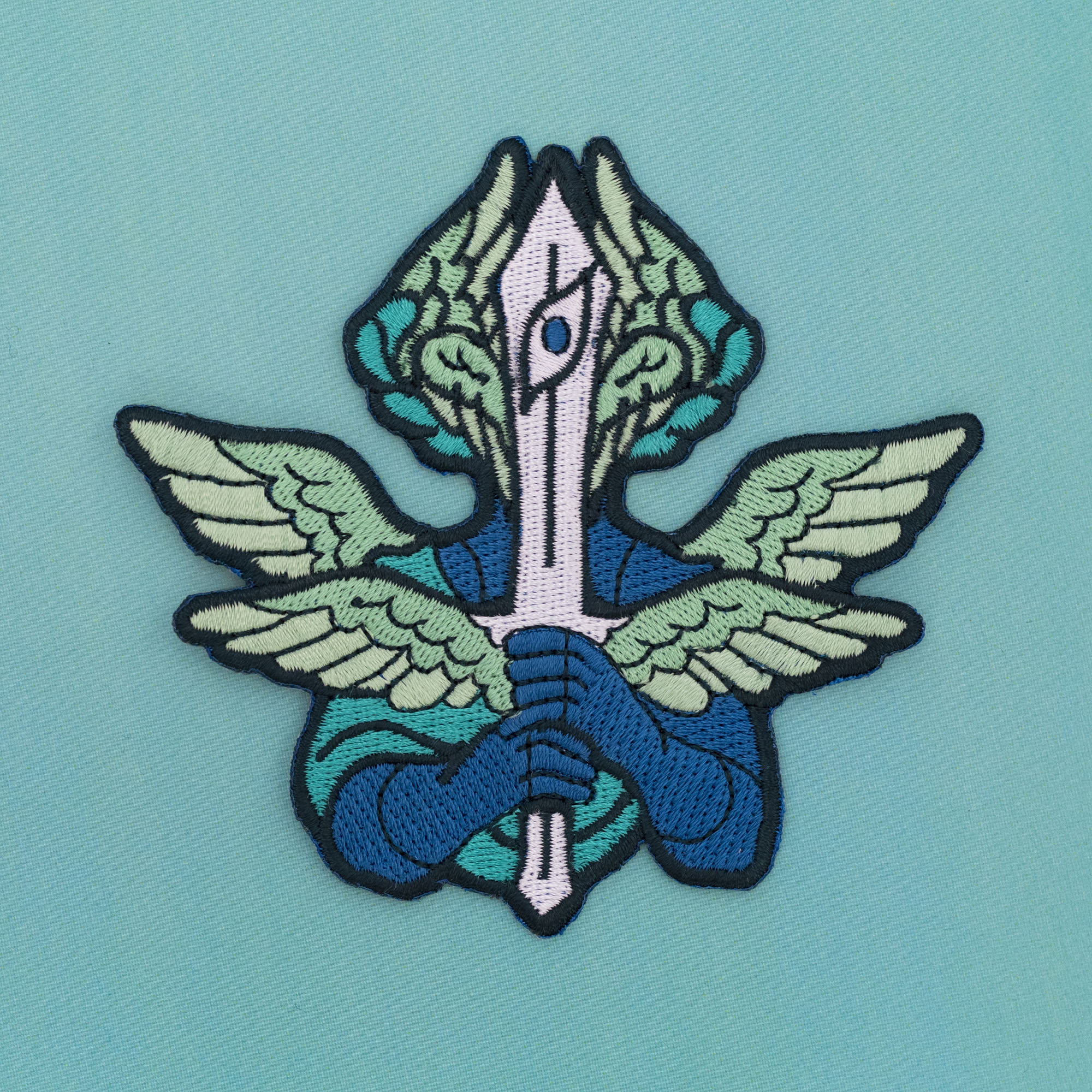 A sword-wielding archangel, for Achillean/MLM pride.The patch is 4 inches (10 cm) on the longest side, embroidered; with an iron-on backing. The backing should last for 25 washes. I recommend putting a few stitches in so you don’t lose the patch.