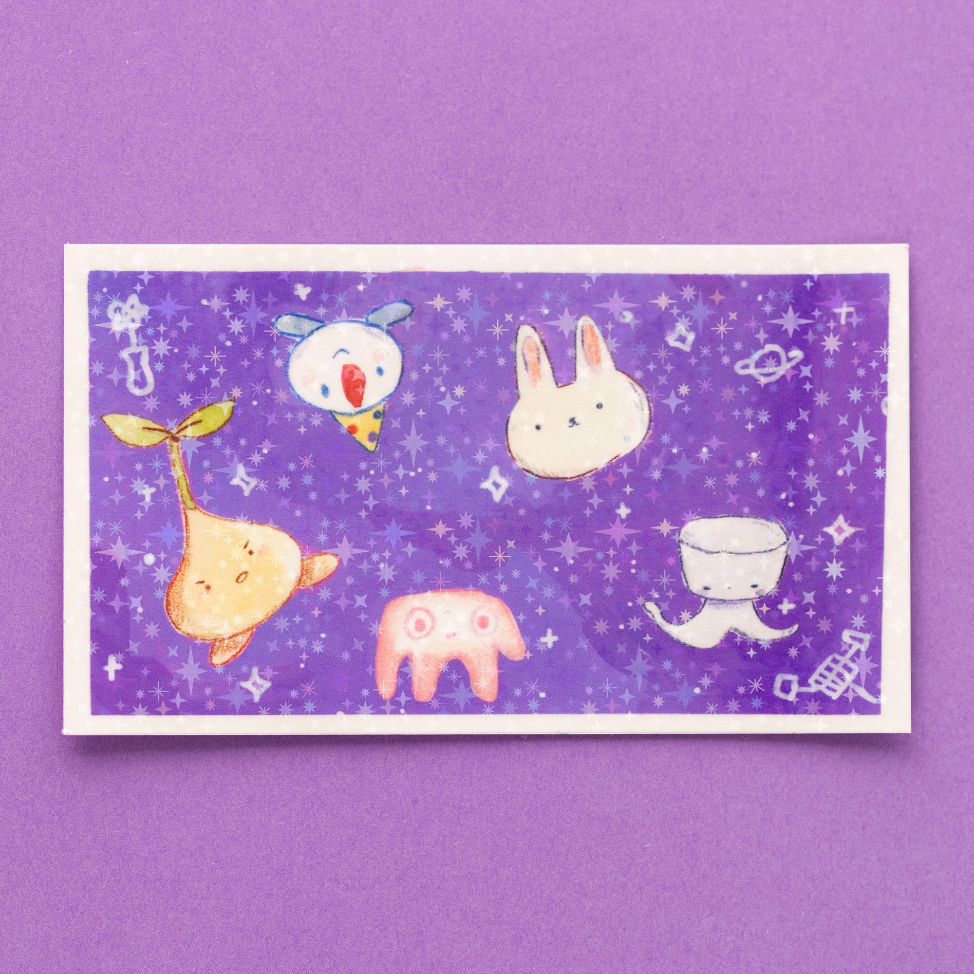 Fanart of all my favourite funky lil' guys from the incredible (yet super sad) game, Omori! Printed on high quality vinyl with a sparkly holographic stardust finish. Water proof, UV resistant and dishwasher safe!