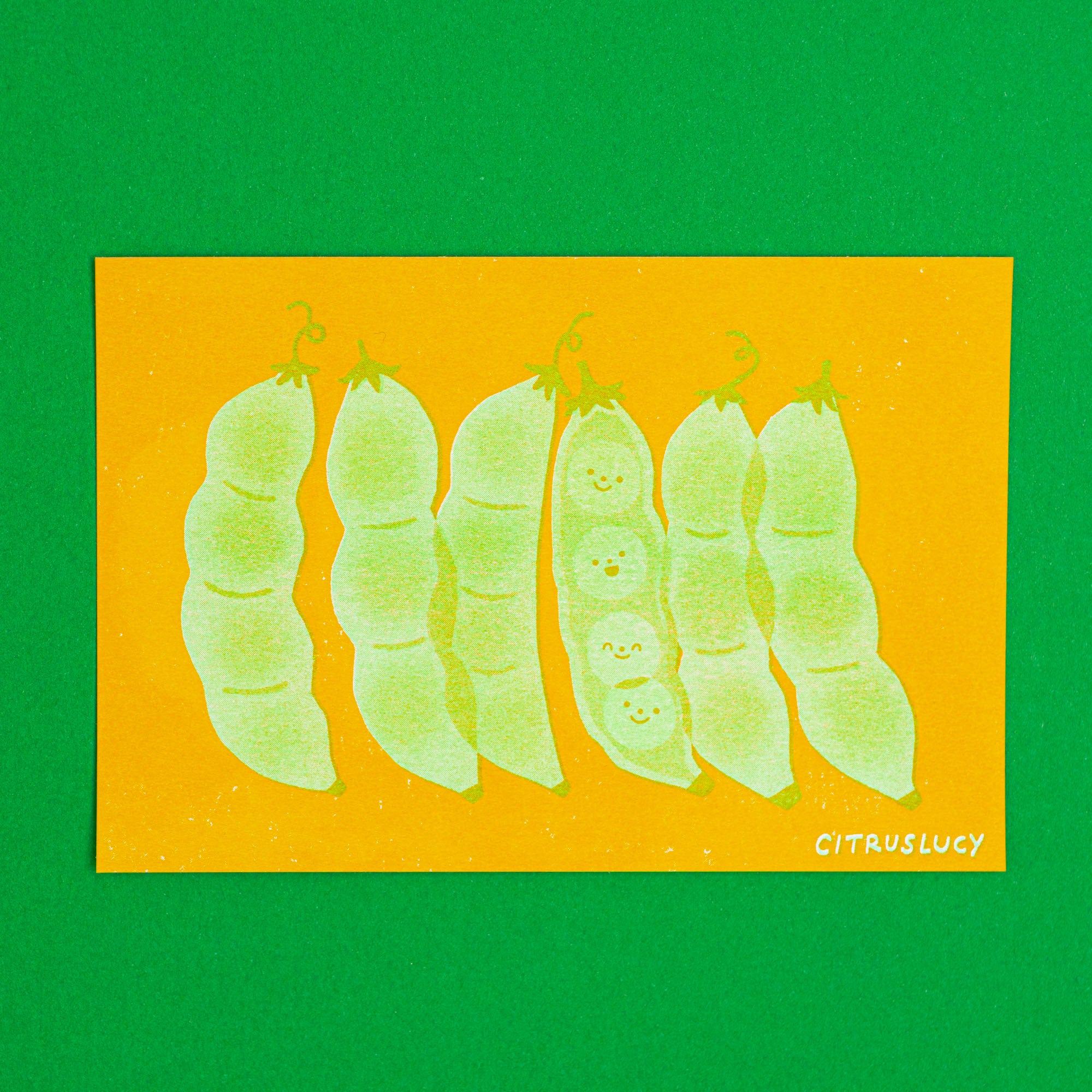 Tasty but too cute to eat. Two colour risograph postcard, printed in Japan.