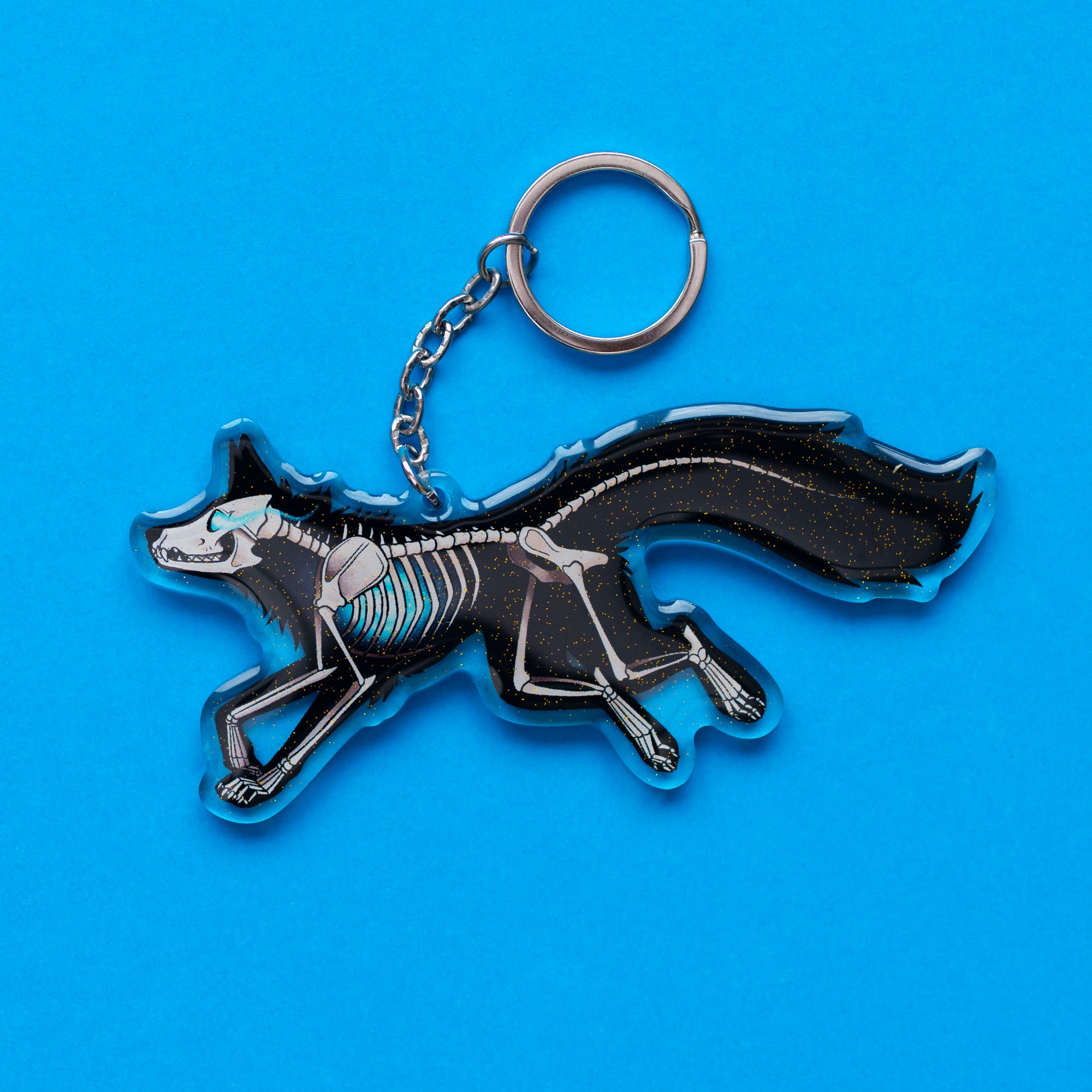 Spoopy animal skeleton charm standing out with glitter epoxy!