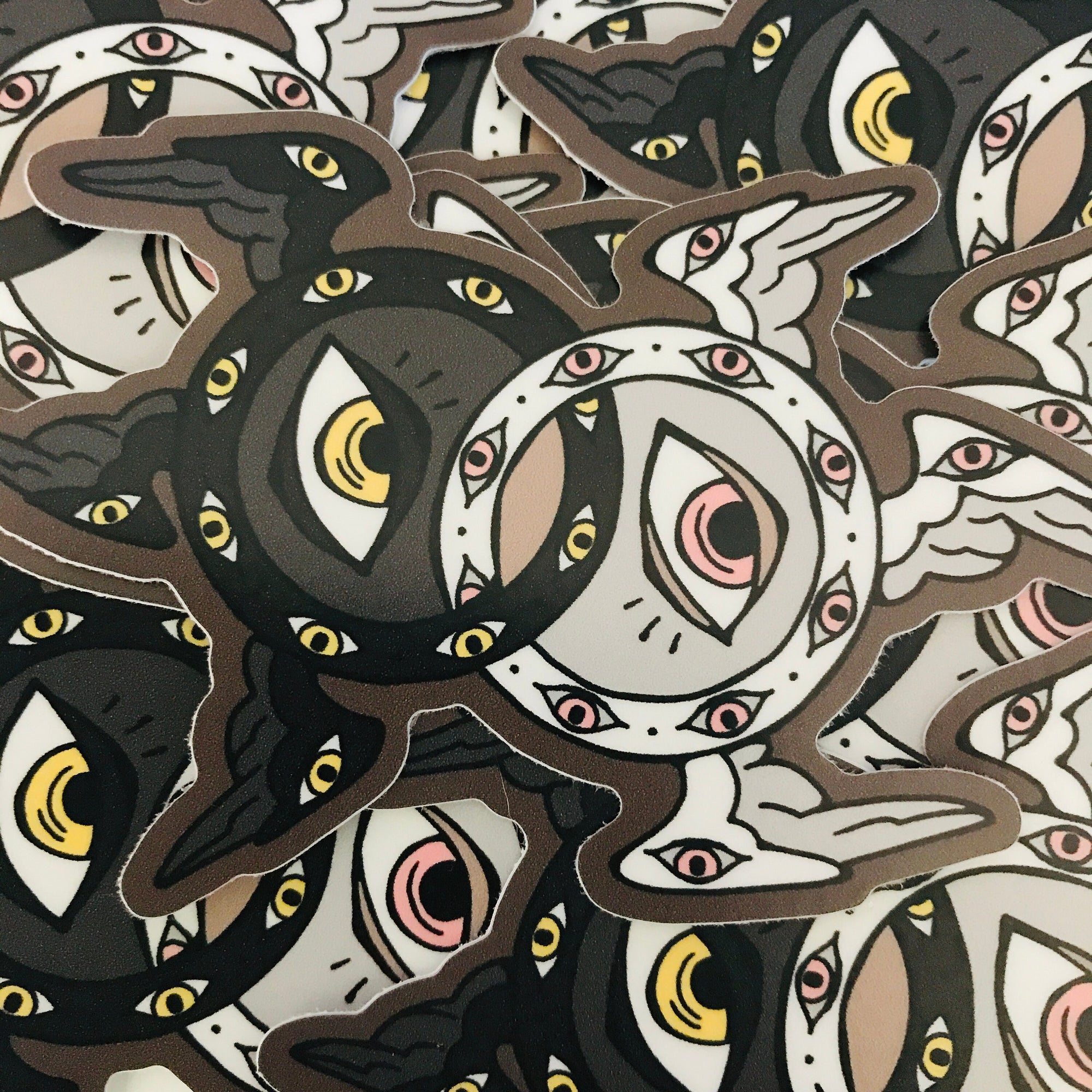A pair of linked ophanim for Queerplatonic pride. This sticker is approximately 3 inches (7.6 cm) on the longest side, and printed on matte vinyl.