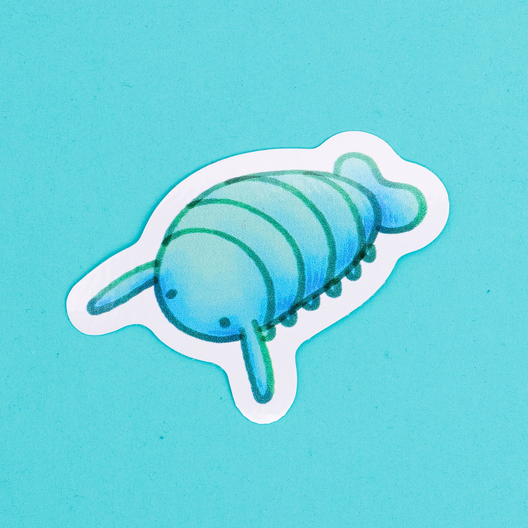 Did you know that more than 80% of the ocean is still unmapped? Can you imagine what might be down there? Maybe colossal sea monsters! Maybe lost civilisations! Or, more importantly, maybe even more weird ocean guys! This little guy is one we already know about, but that doesn't make them any less special. Did you know that I love the giant isopod very much? Also they're directly related to slaters and were around 160 million years ago? High quality sticker printed on waterproof, dishwasherproof, and fridge/freezer proof vinyl.