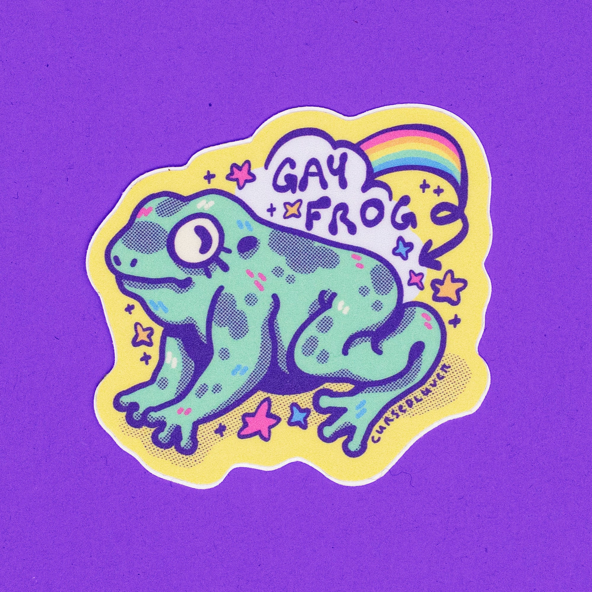 Have the chemicals in your town's water made you or your frog gay? Celebrate today with this wonderful vinyl sticker by CURSEDLUVER.