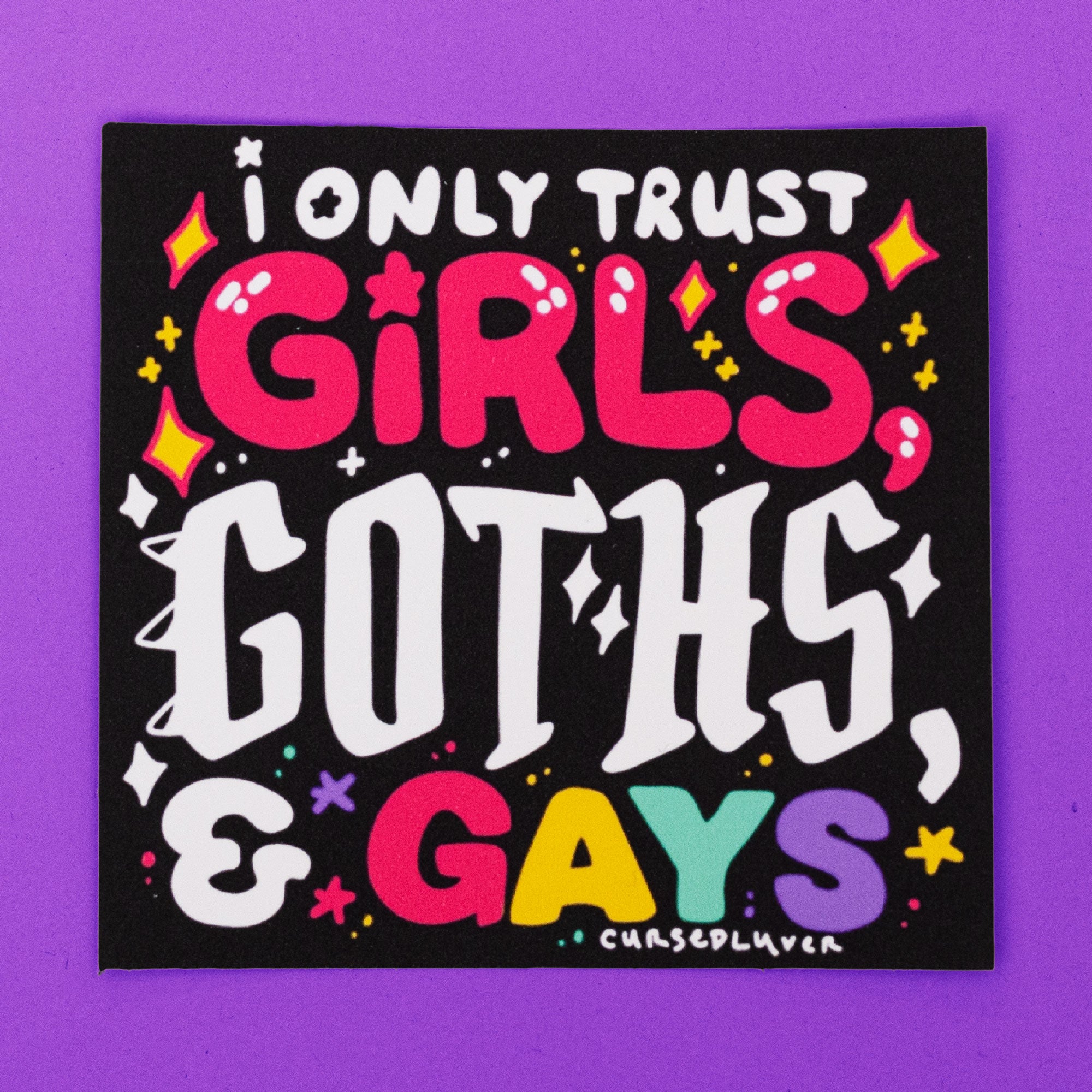 "i only trust girls, goths & gays" sticker