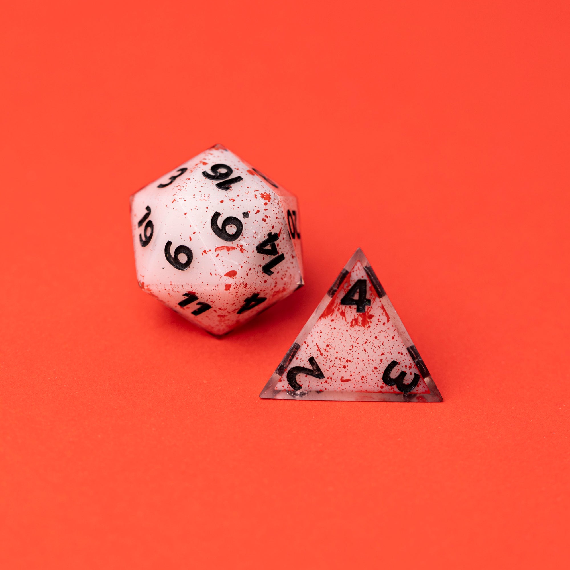 Please Note: All dice are handmade, and as such, may have small imperfections, but will not effect the gameplay nor the rolls of the die itself. I will endeavor to note any marks contained in each set, if they are present.