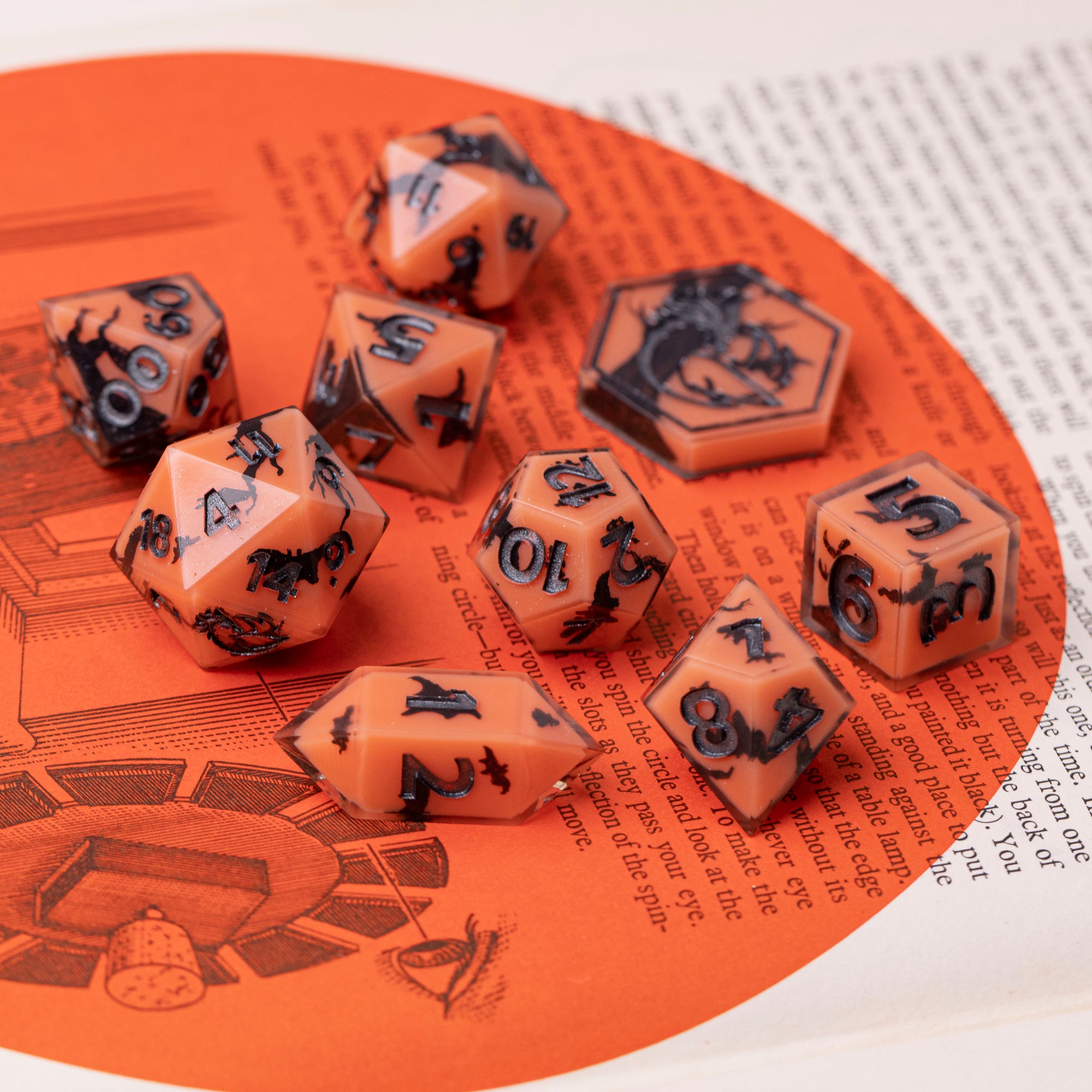 Please Note: All dice are handmade, and as such, may have small imperfections, but will not effect the gameplay nor the rolls of the die itself. I will endeavor to note any marks contained in each set, if they are present.