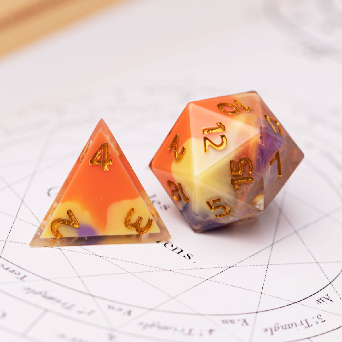Please Note: All dice are handmade, and as such, may have small imperfections, but will not effect the gameplay nor the rolls of the die itself. I will endeavor to note any marks contained in each set, if they are present.