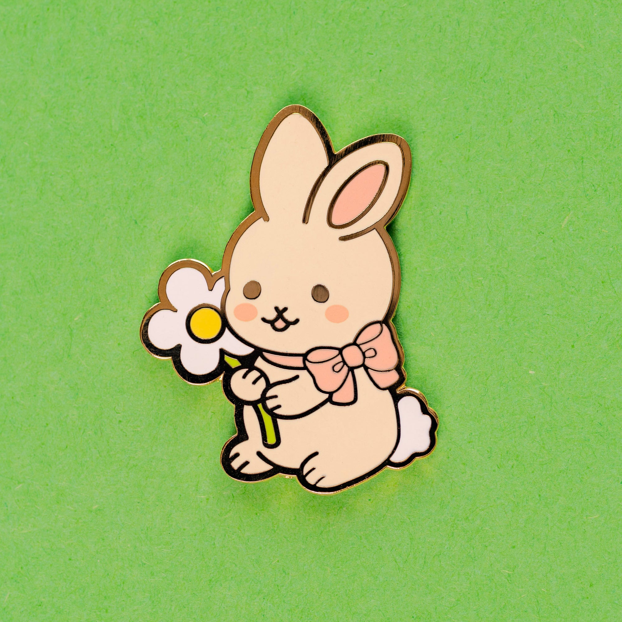 This adorable bunny pin is made from hard enamel and measures 1.5" tall. Perfect for decorating your jacket, hat, backpack, and more!