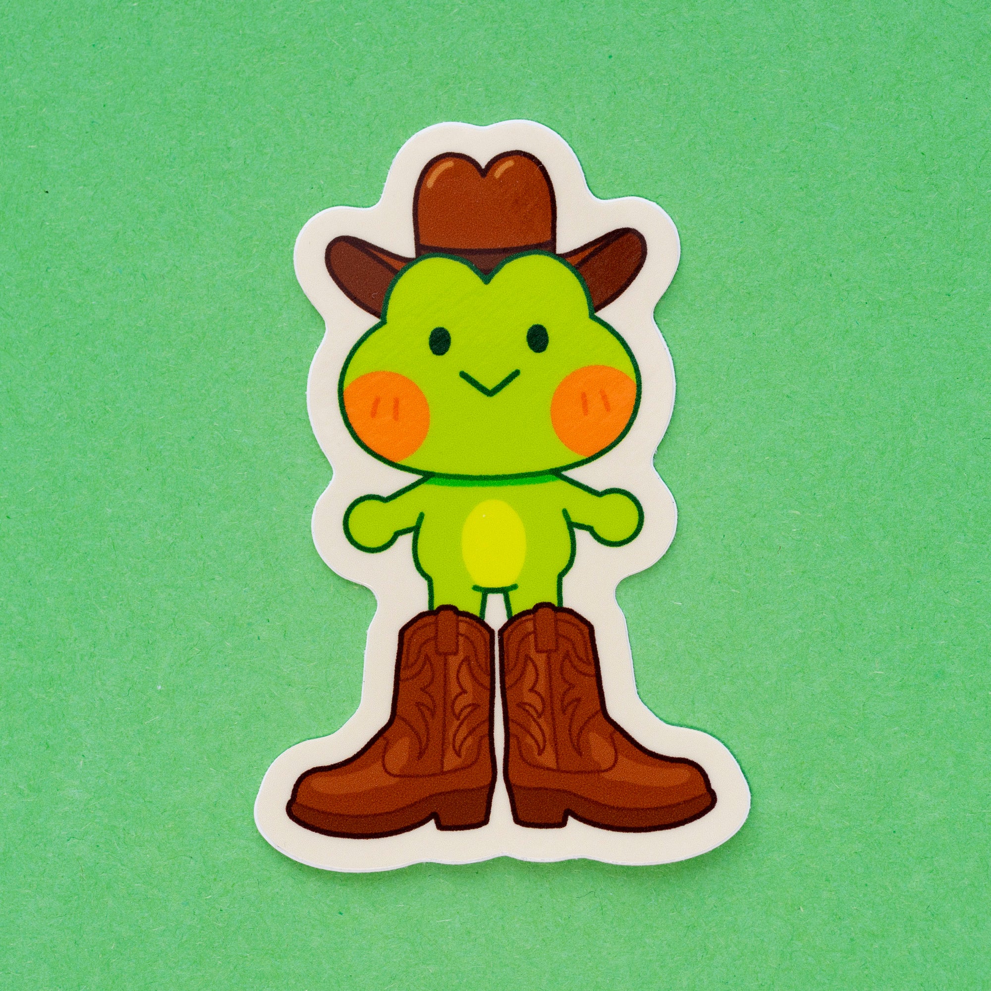 This Cowboy Frog sticker is 3” tall and has a glossy finish. These stickers are perfect for decorating your laptop, water bottle, journal, and more!