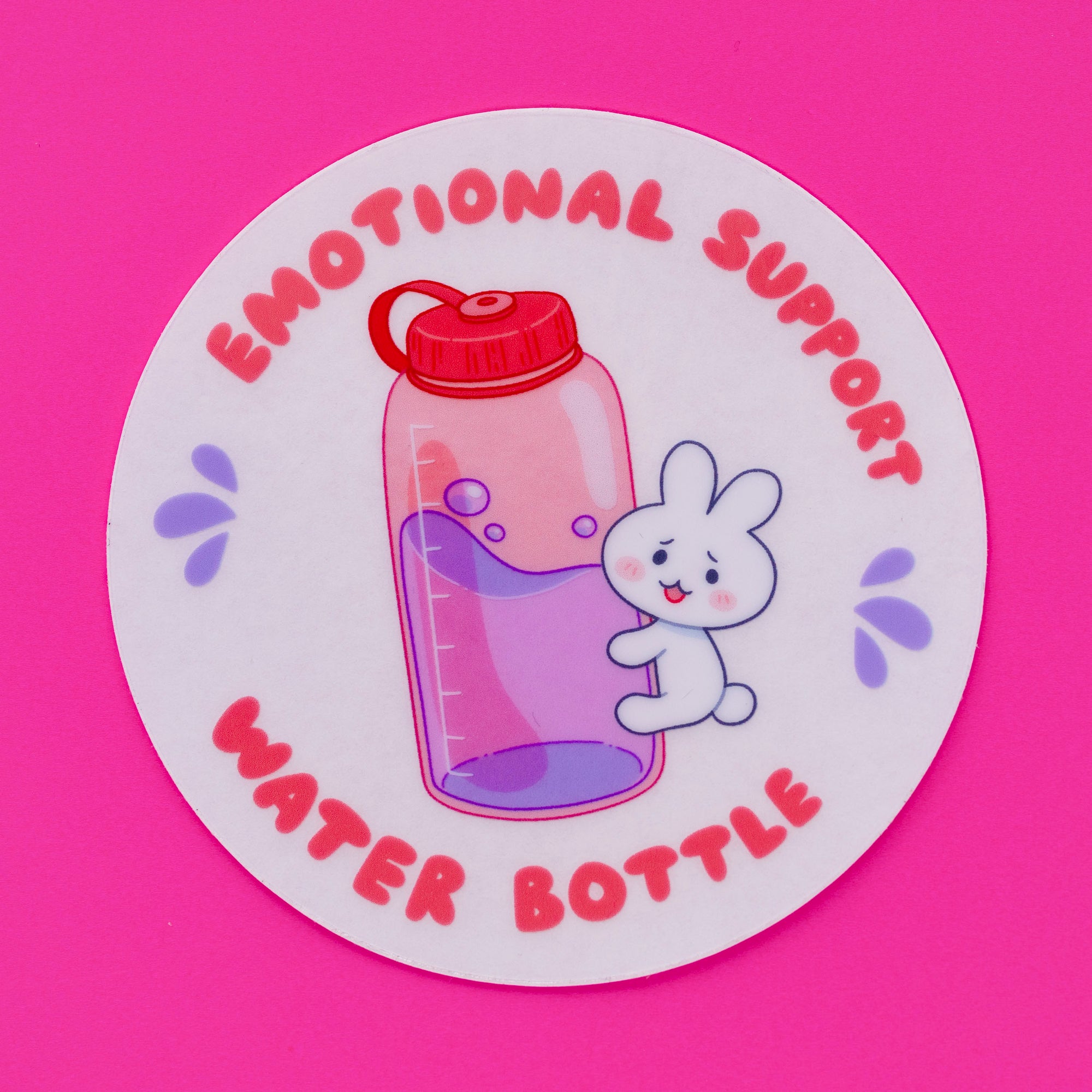 This Emotional Support Water Bottle sticker is clear, 3” tall, and has a glossy finish. These stickers are perfect for decorating your laptop, water bottle, journal, and more!