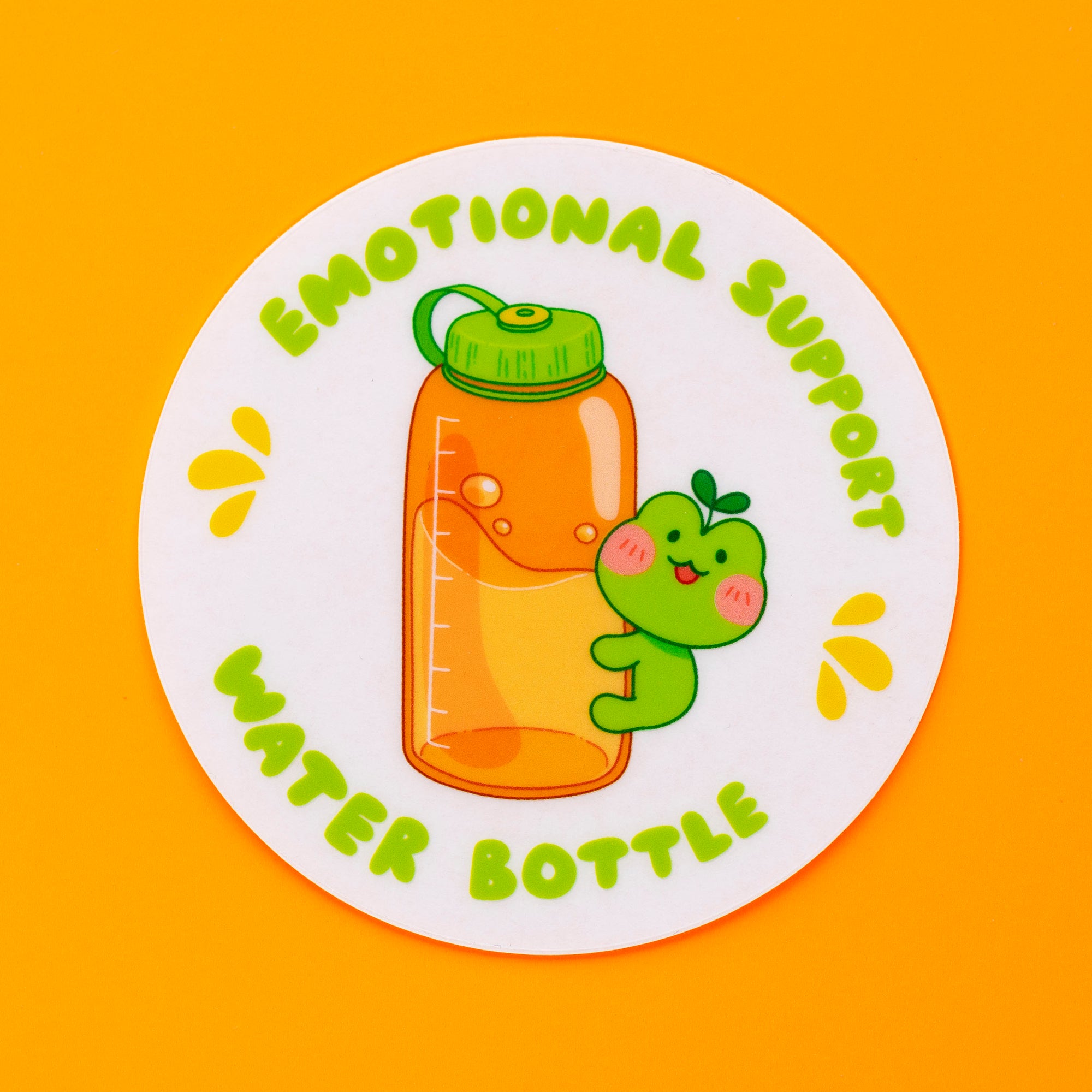 This Emotional Support Water Bottle sticker is clear, 3” tall, and has a glossy finish. These stickers are perfect for decorating your laptop, water bottle, journal, and more!