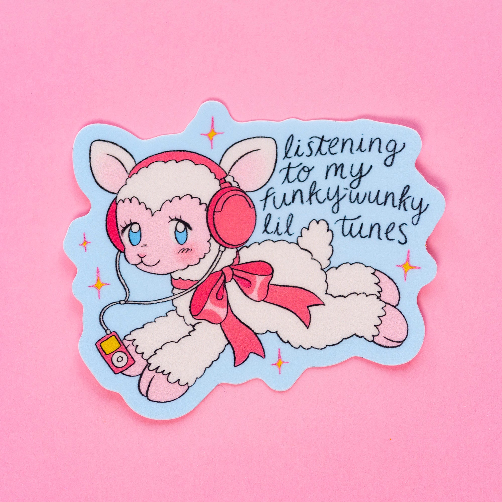 This "Listening to my funky-wunky lil tunes" sticker is 3” wide and has a matte finish. These stickers are perfect for decorating your laptop, water bottle, journal, and more!
