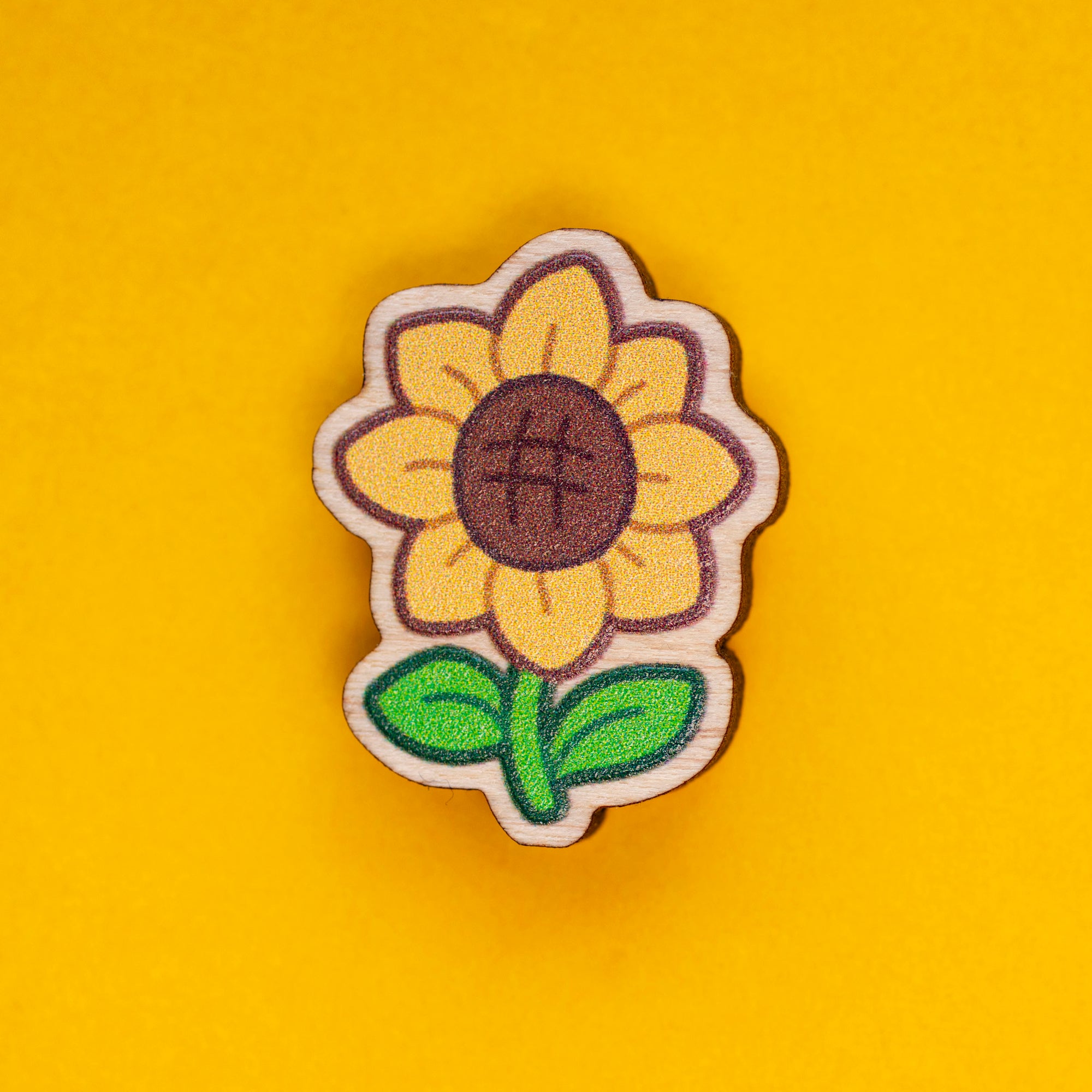 This bouquet mini wood pin is maple wood with a matte finish. They measure about 1” tall and have a pink rubber clutch backing. These are a perfect addition to a pin board or ita bag, or as a cute accent on a jacket or bag!