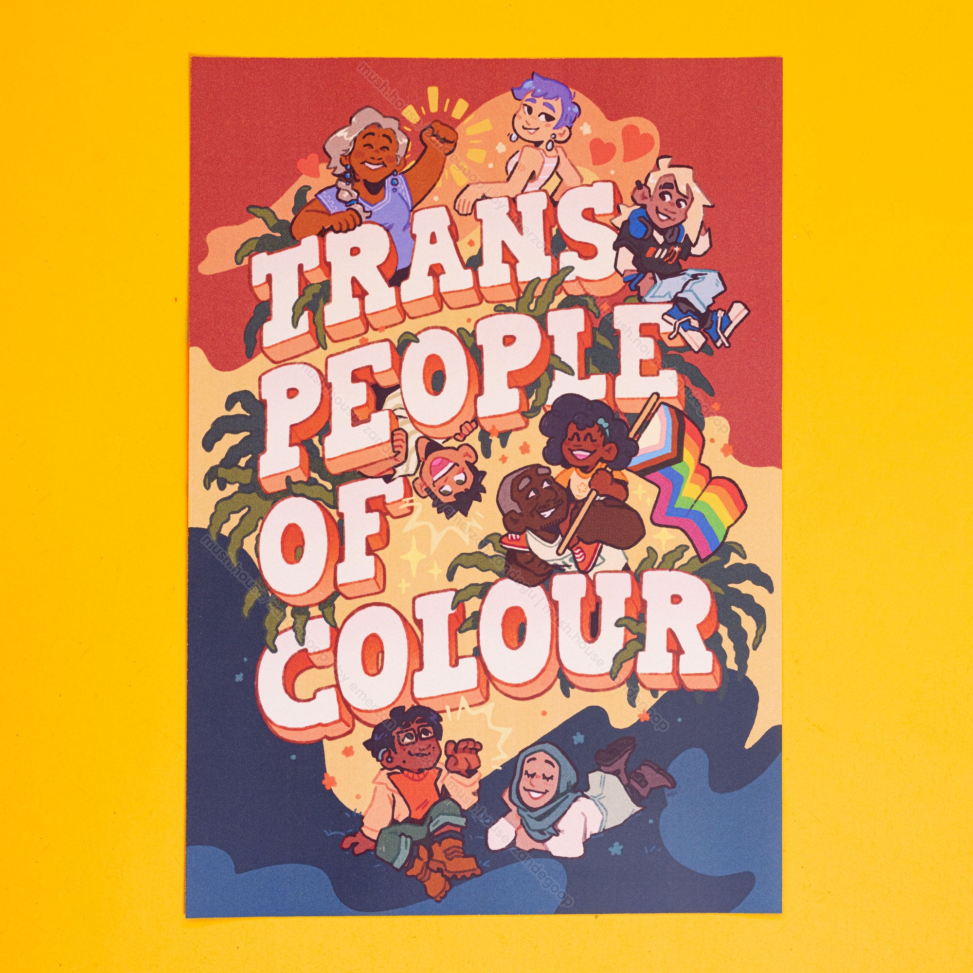 Trans people exist in every culture and background across the world throughout history. This piece celebrates their ongoing legacy and history. An illustrated print collaboration by Emerson Zandegu and Margot Fink!