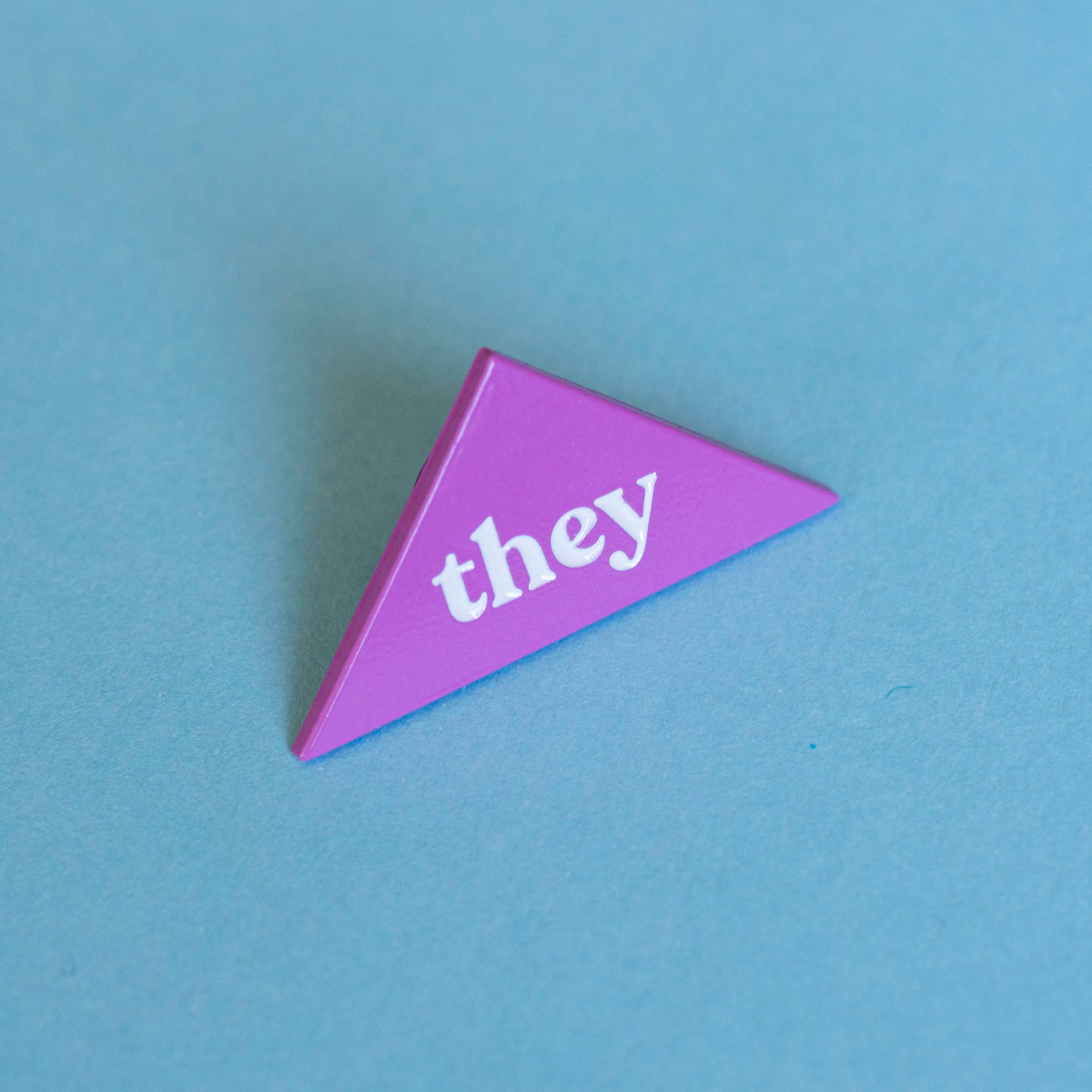 THEY! Create your very own custom combination of pronoun pins! Made with Soft Enamel on Pink Coated Iron.