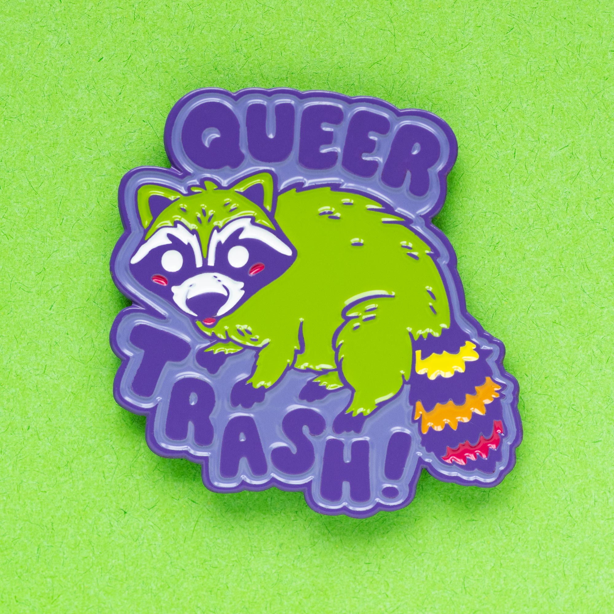Nyahhhh!!! This salty little raccoon is queer trash and PROUD. Catch him outside how bout dat? With his silly multi-coloured tail and cranky trash-cat energy, how could you NOT want to hang with this funky dude?