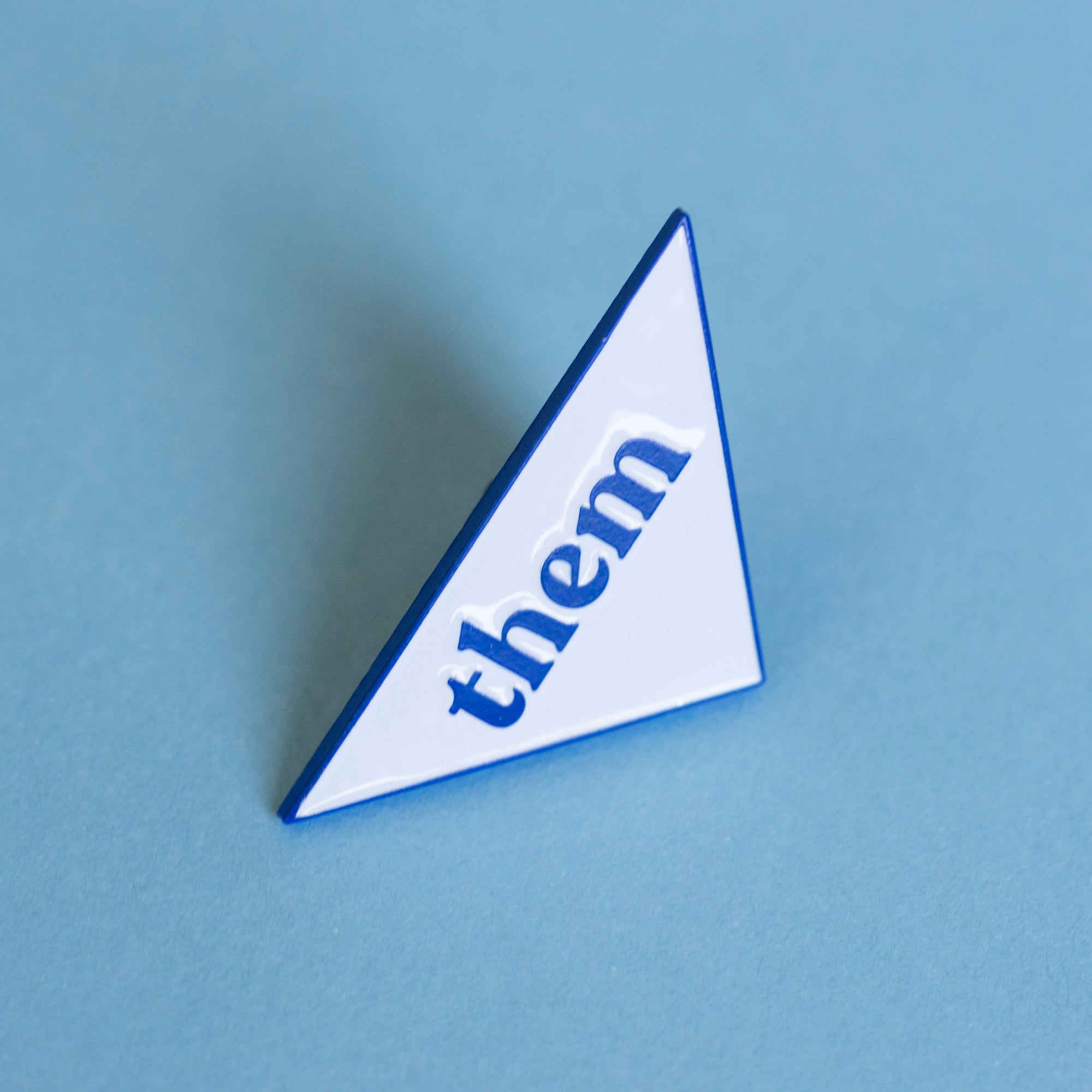 THEM! Create your very own custom combination of pronoun pins! Made with Soft Enamel on Blue Coated Iron.