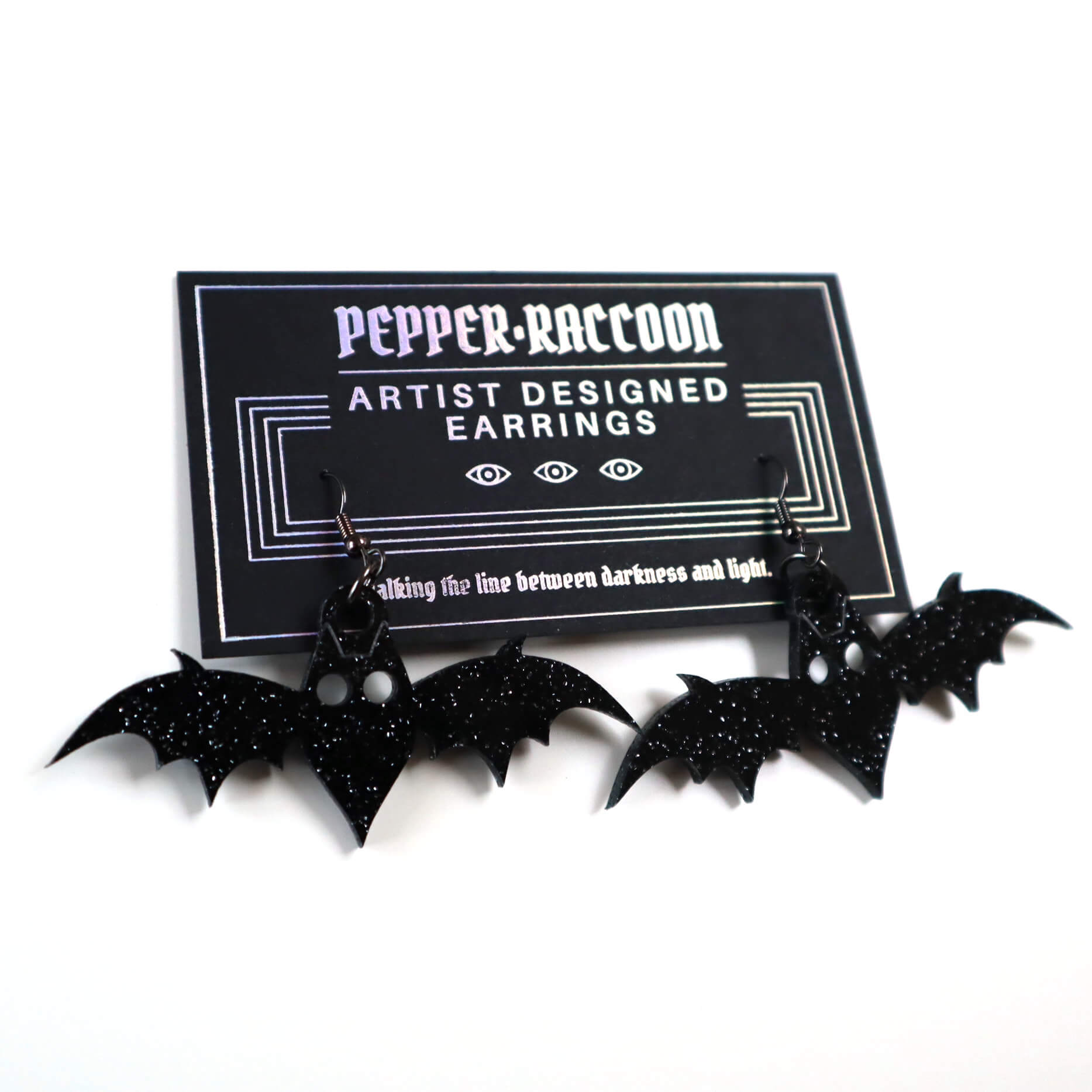 Just in time for the spooky season (which is year-round, in my opinion), these extra special glitter bat earrings are waiting to come home with you! Featuring a engraved set of ears and two cute little eyes, these friendly bois will add a touch of magic to any outfit. As we know, black and glitter go with everything.