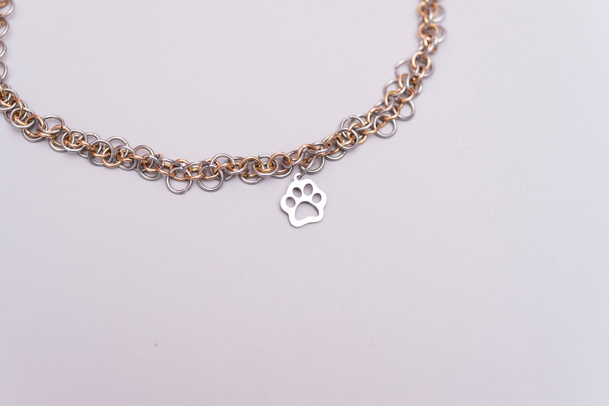 Handwoven stainless steel chainmaille necklace made with love in Bulleke-bek, Narrm. Brass clasp forged by hand.