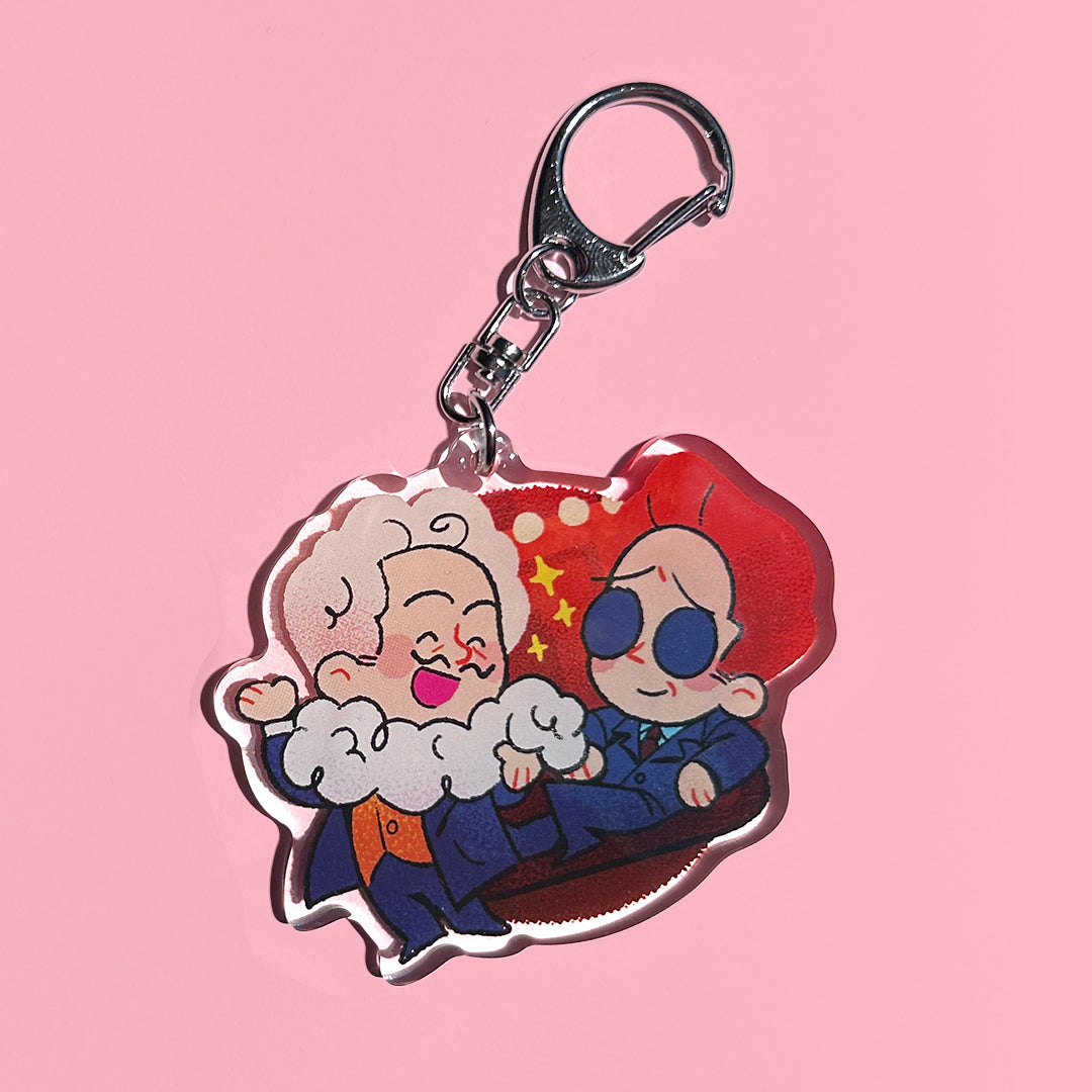 Charm featuring Aziraphale & Crowley from Good Omens. Double sided same design.