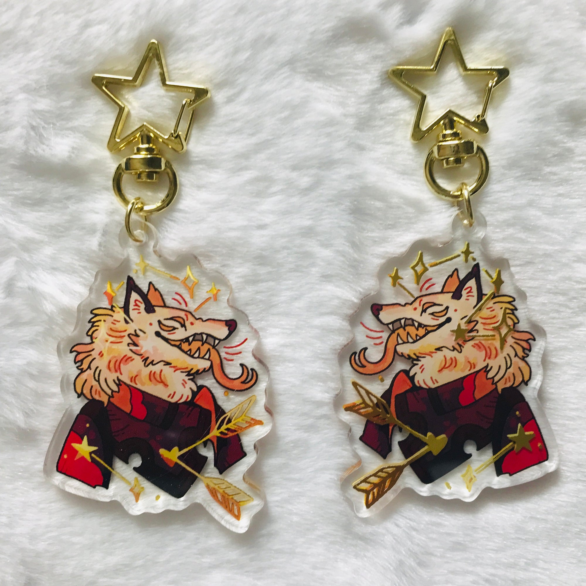 This acrylic keychain is 2.5 inches (6.3 cm) long, double-sided with the same print on both sides. The keychain has a gold star clasp and gold hot stamped foil on one side.