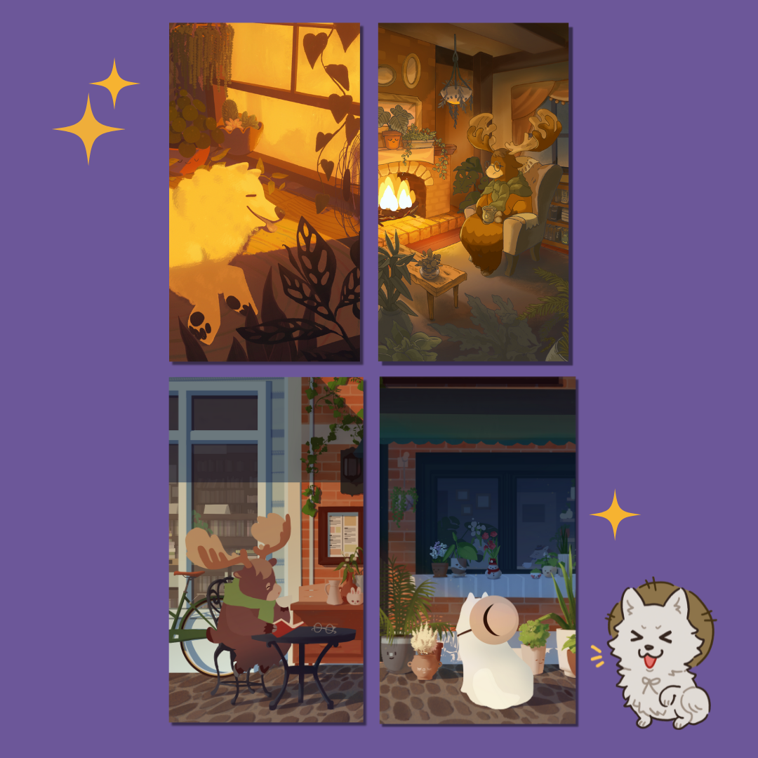 A collection of four phone wallpapers from Kinder World collaboration artists Jackie Lee, Sara Litzenberger and Robyn Haley.