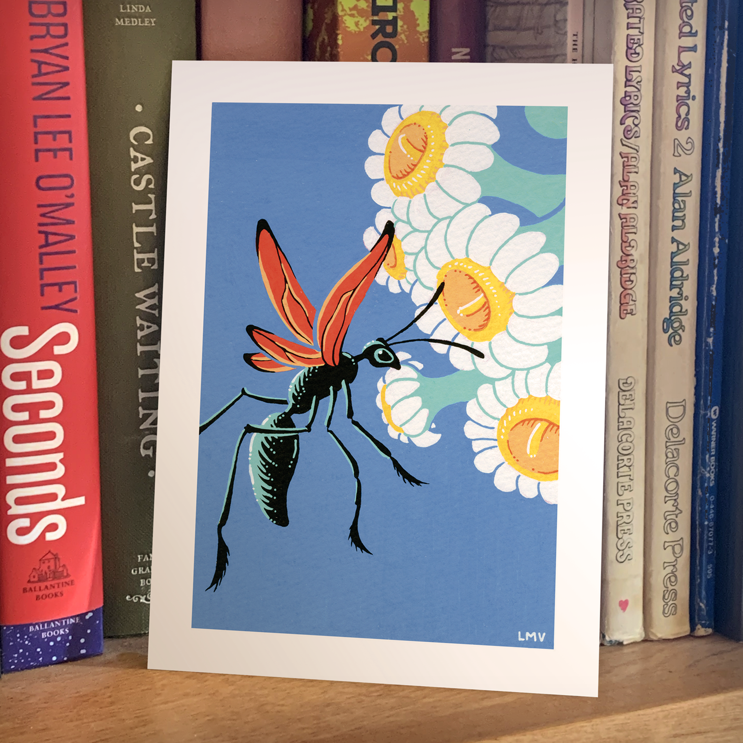 From a series of native Arizona species illustrations, the Tarantula Hawk wasp. They actually prefer milkweed flowers, but Saguaro blooms are a bit more iconic. This is a high quality print on textured paper measuring 5"x7".
