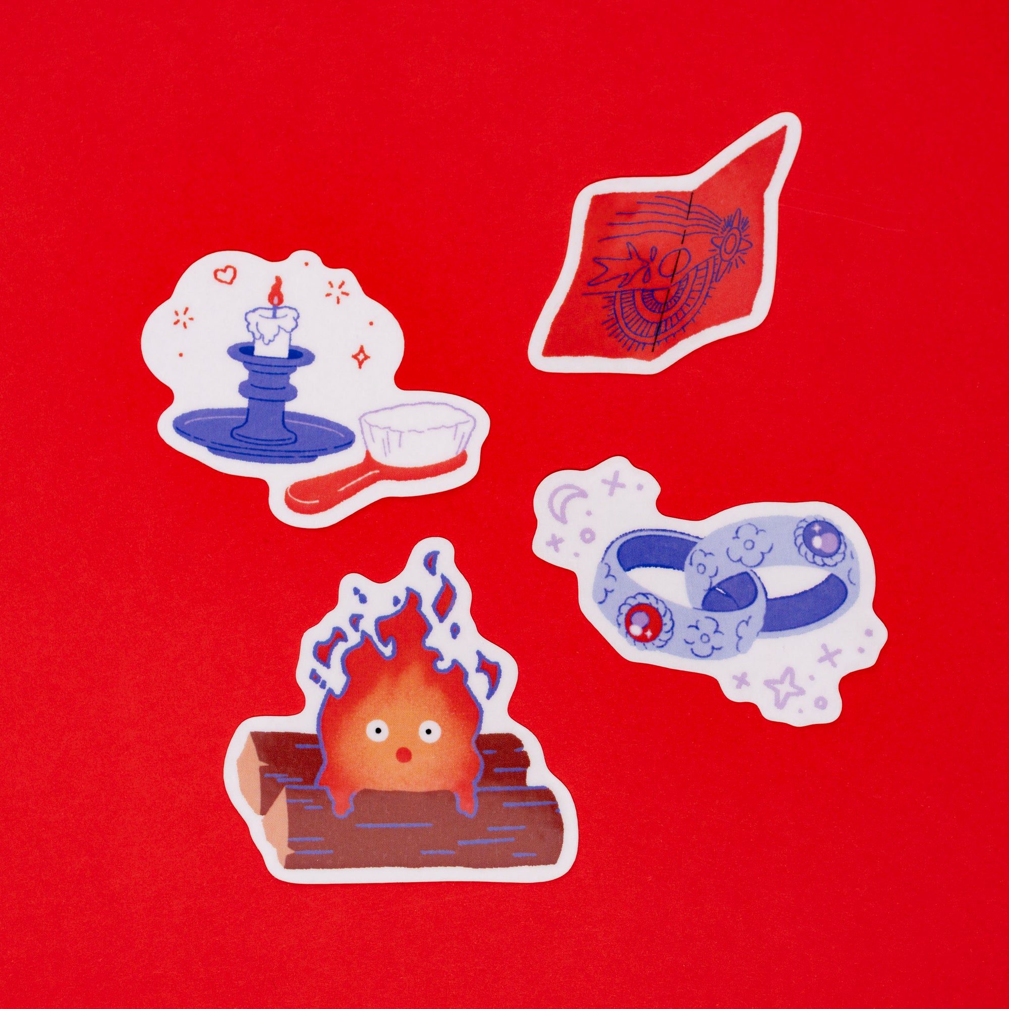 Four-pack of temporary tattoos inspired by Howl's Moving Castle, approx. 2 inches each.