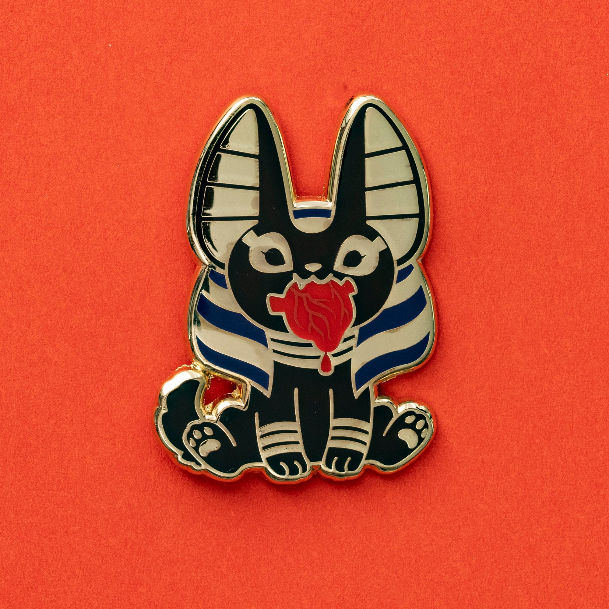 A cute Anubis jackal pup nomming on a bleeding heart, which is maybe not a very cute thing to do, alas.