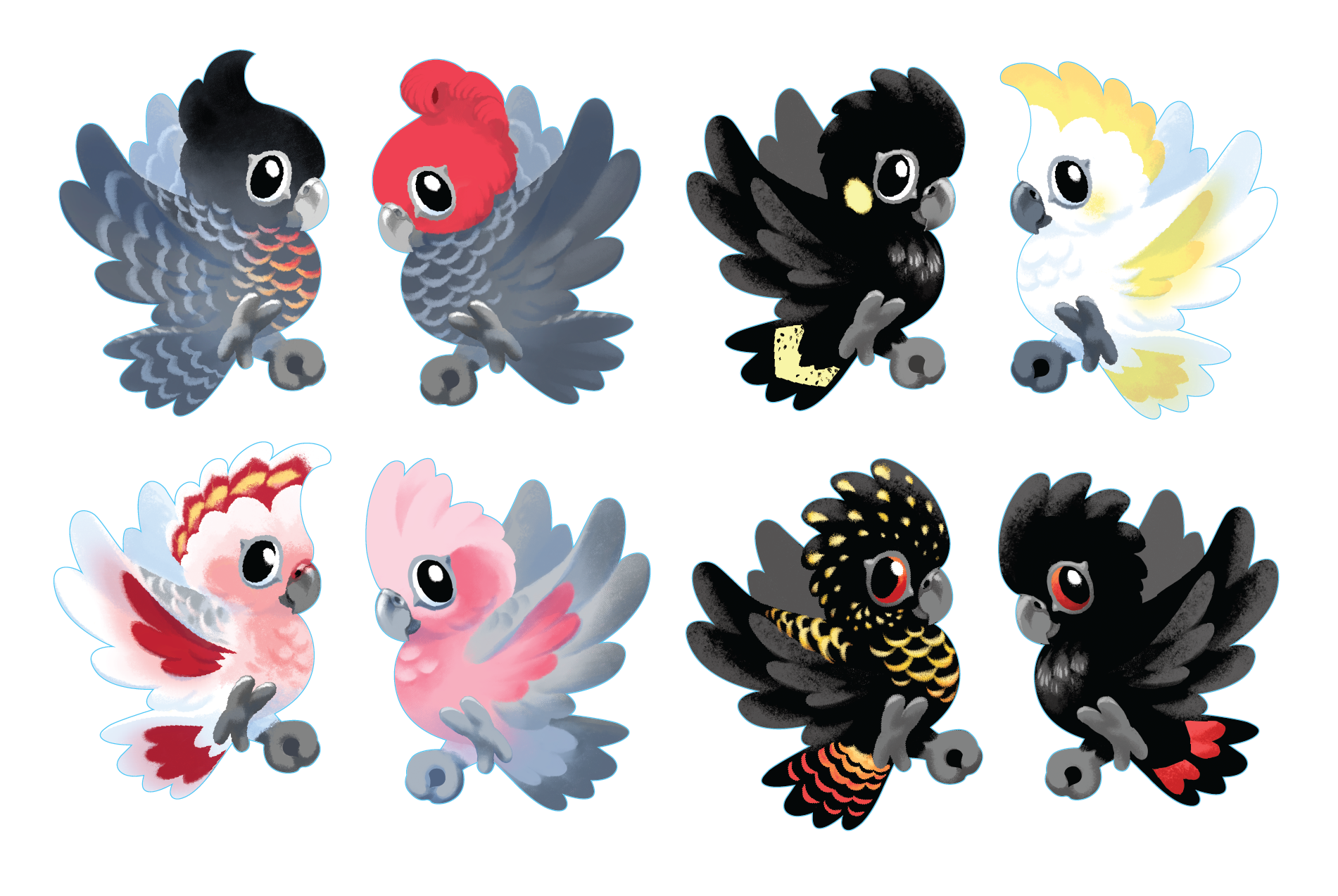 Some favourite Aussie parrots, now as stickers! These stickers are full bleed kiss cut, meaning there's no white sticker border around them - the art goes right to the edge of the sticker! Once you peel them off they're perfect little parrot shapes that will fit in on whatever background you stick 'em! The full sheet measures 4x6 " and each individual sticker is about 1.5 inches high. This glossy weatherproof clear vinyl will hold up to 2-4 years of outdoor use / heavy handling too! Great for phones, handheld consoles, vehicles, etc.