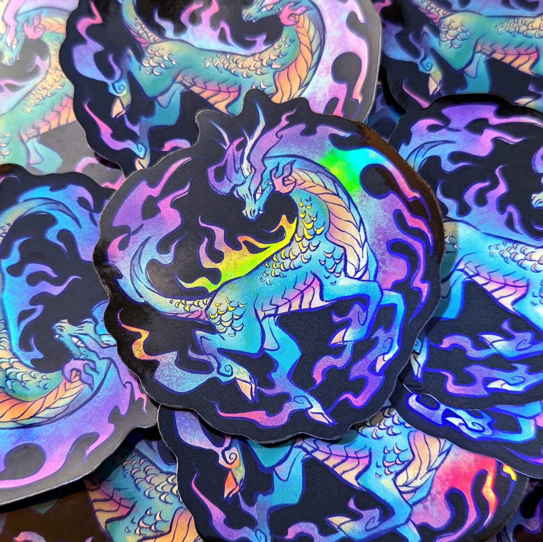 The sticker measures 3x3 inches and features spot holographic details on its scales, firey mane and eyes etc.