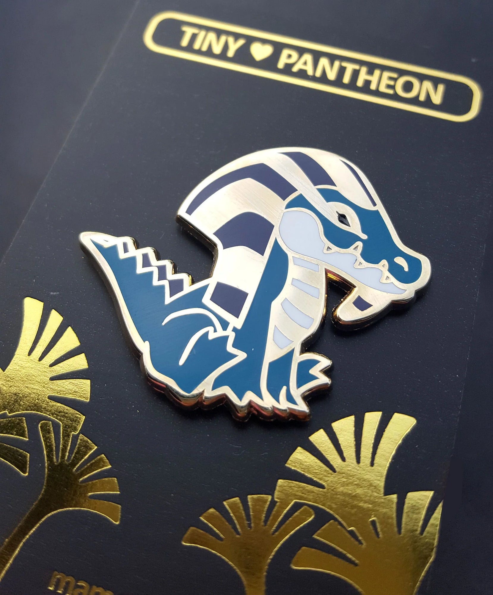 Crocodile god of fertility and military might. Actually an excellent protector. A hard enamel pin of the ancient Egyptian deity, Sobek - Tiny Pantheon style! Measures 32mm (approx 1.3 inches) in height and features 2 posts on the back so that it remains in place wherever you pin it!