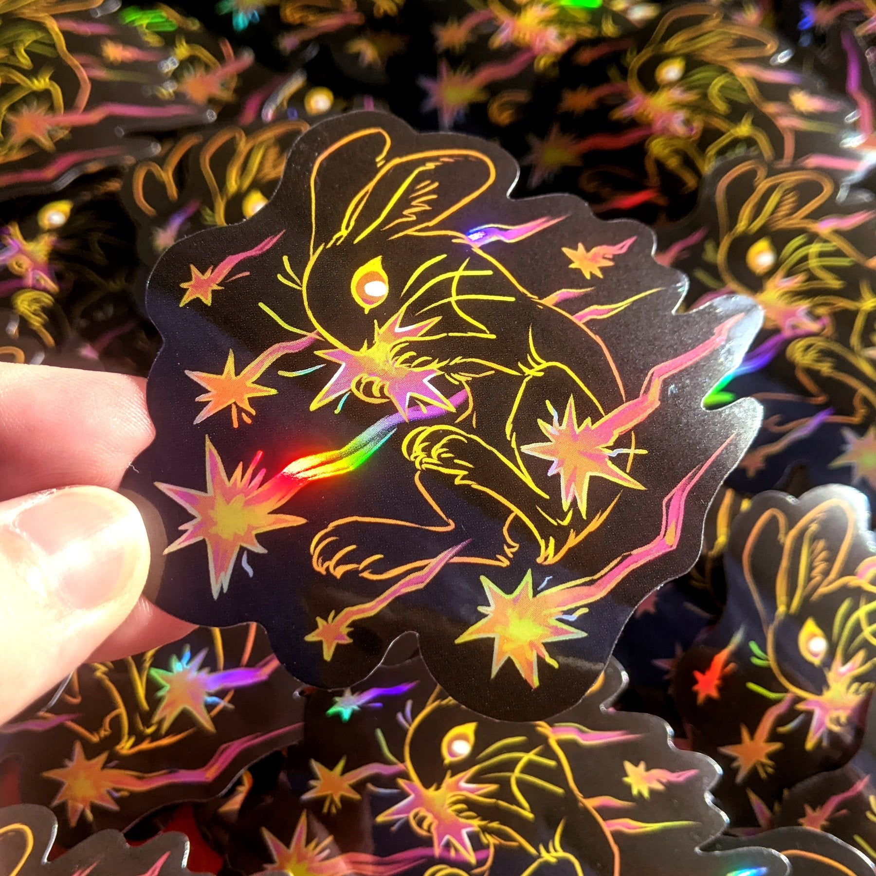 These stickers are UV laminated holo vinyl so they're super tough and good for 2-4 years even in harsh conditions! Feel free to stick em on a notebook, water bottle, console, laptop... even your bike! I dunno, do whatever!