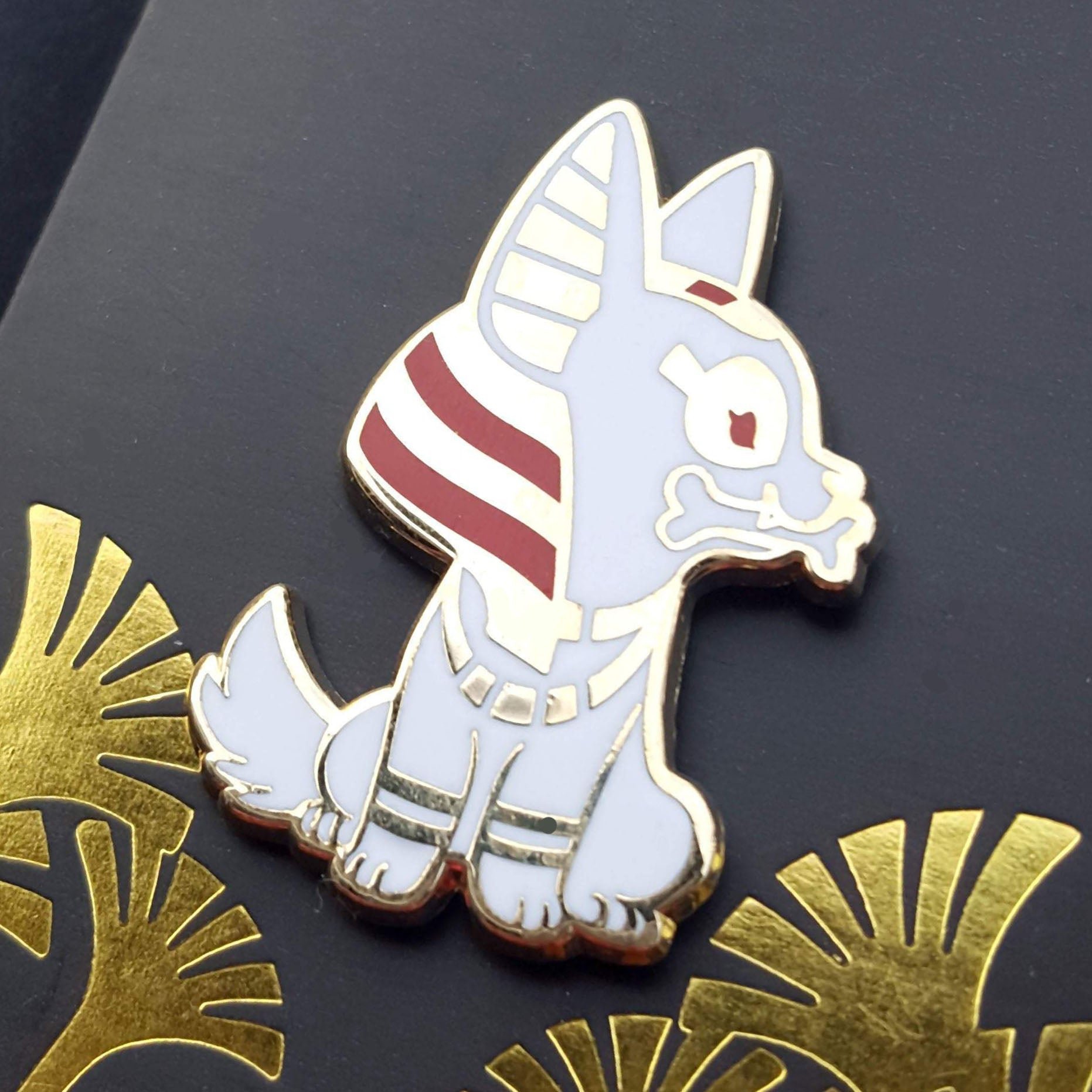A white wolf god of War, often depicted as a soldier. Sometimes considered to be the son of Anubis. A hard enamel pin of the ancient Egyptian deity, Wepwawet - Tiny Pantheon style! Measures 38mm (approx 1.5 inches) in height and features 2 posts on the back so that it remains in place wherever you pin it!