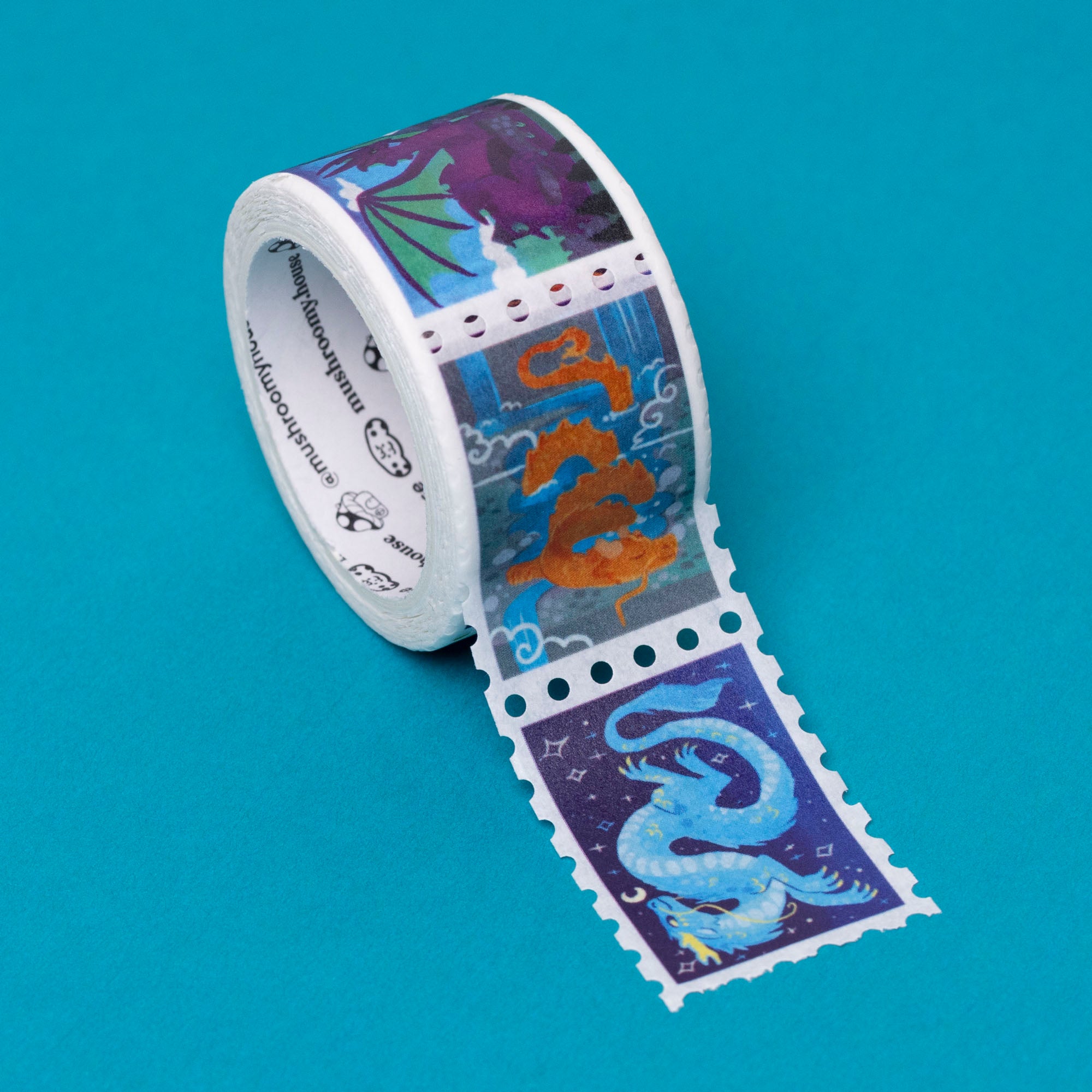 An original illustrated Washi Tape design featuring ornate dragons by MEROAW
