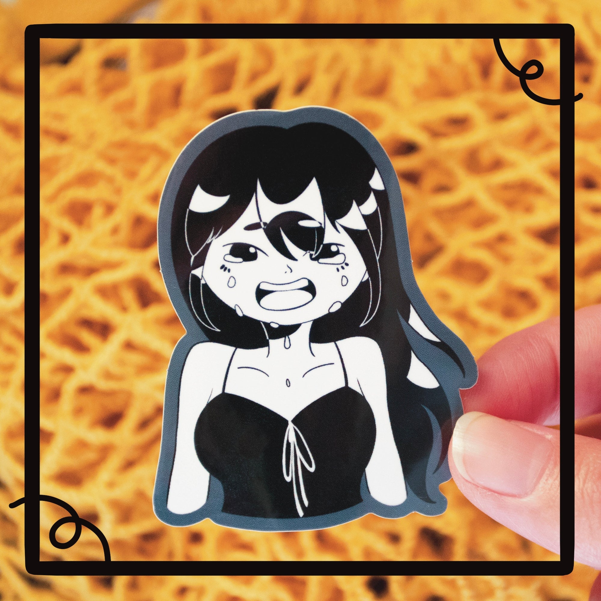"Nande" meaning "why?!" in Japanese. This design was created when the artist was stood down from her job during the Covid pandemic so it was a purely emotional piece.