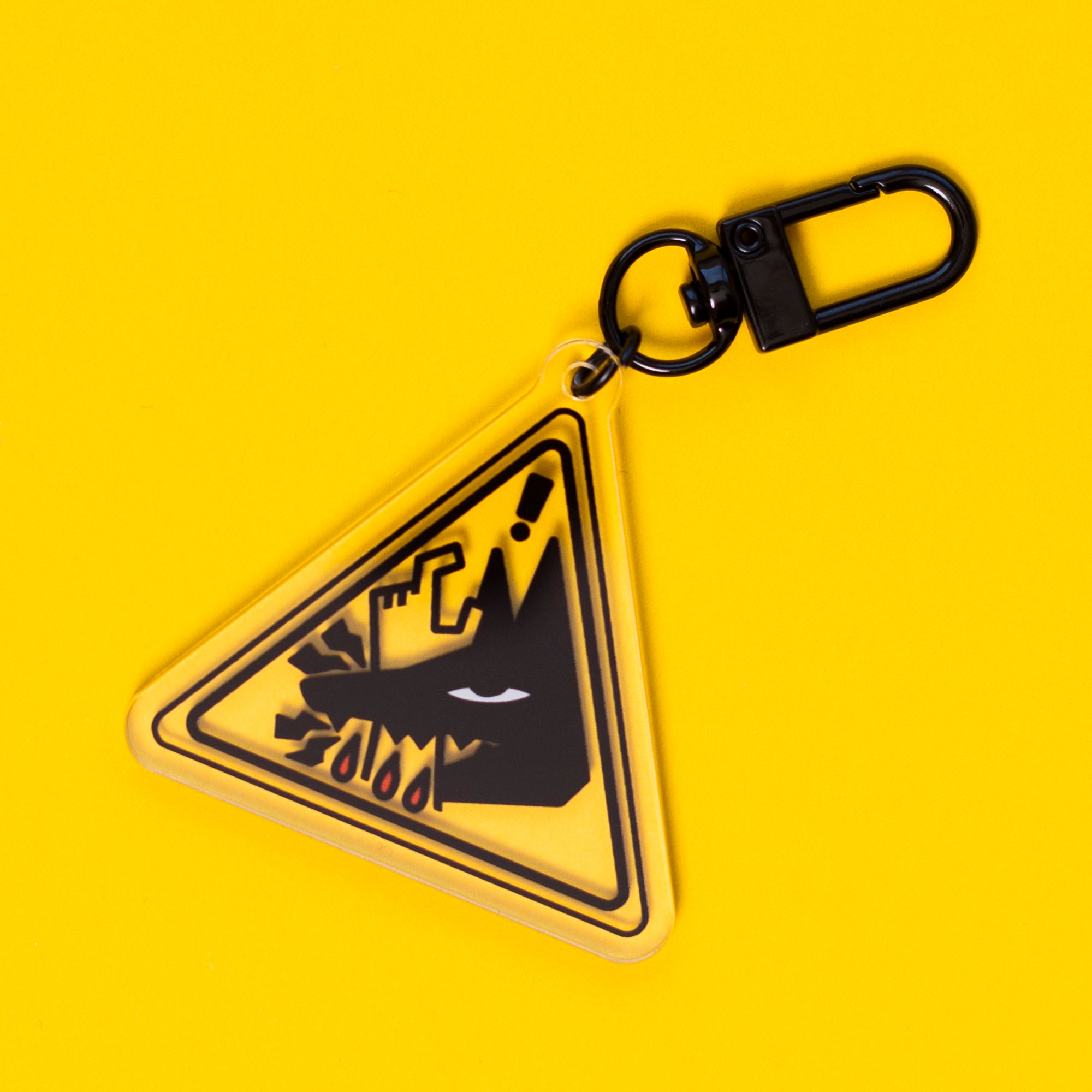 Watch out! These double-sided keychains are printed onto a high-quality clear acrylic, with a sturdy black metal clasp. Hang this onto a backpack or keys to add a little flair!