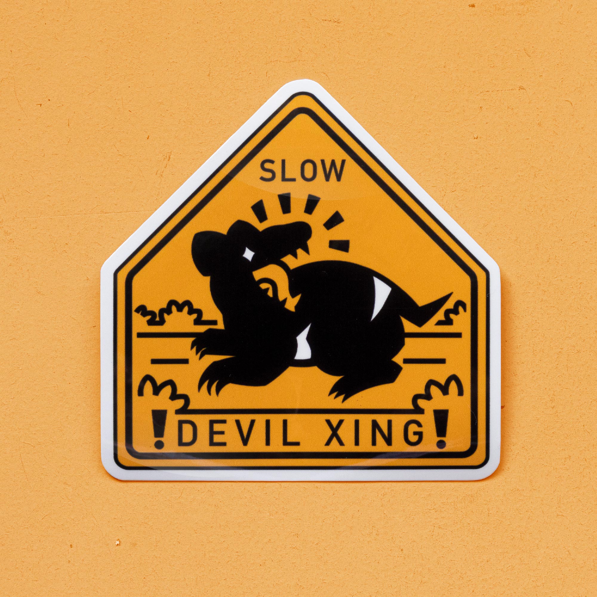One of three in the AUS ROADSIGN sticker series, featuring a Tasmanian Devil!