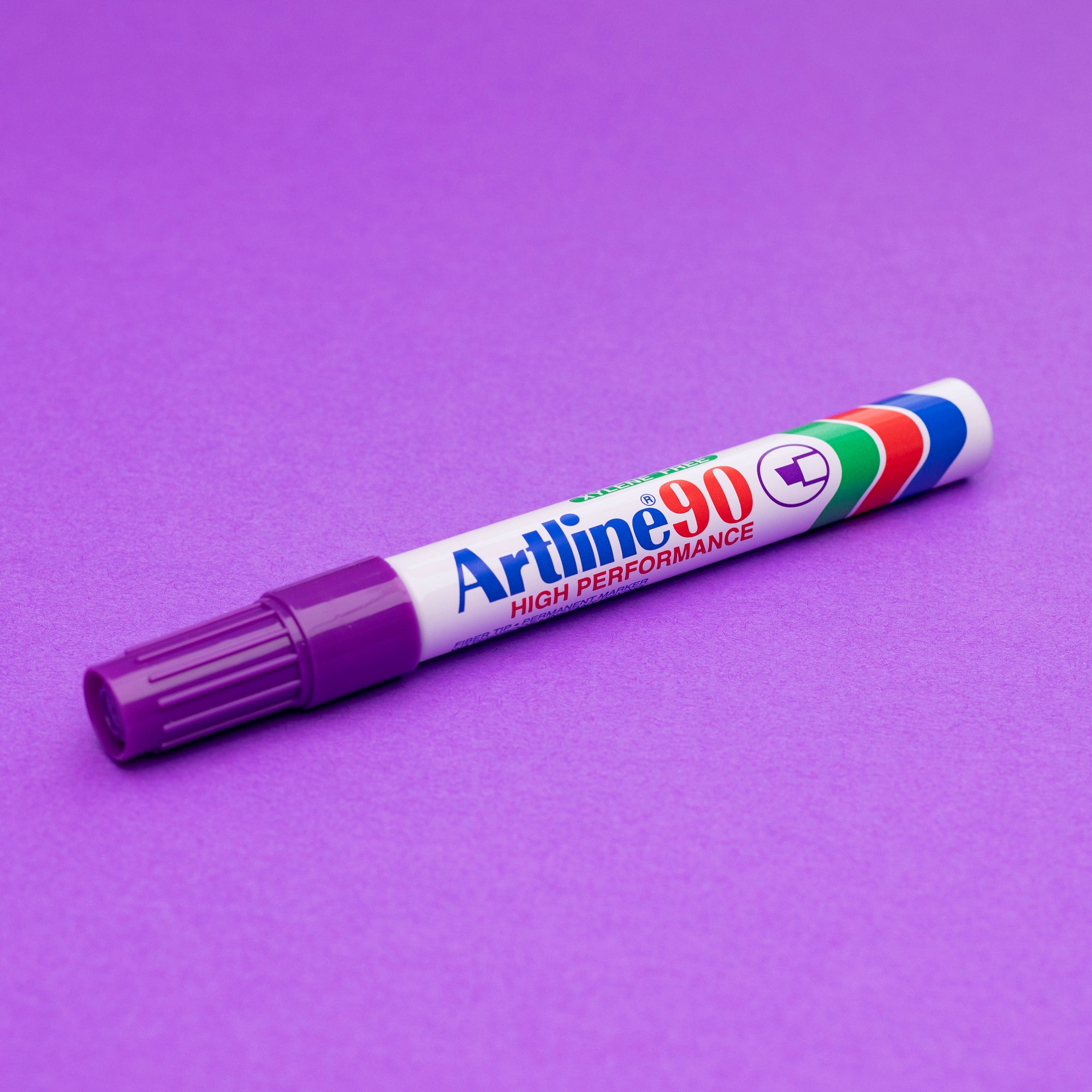 The classic Artline 90 Permanent Marker. Effective on a wide range of surfaces including steel, paper, wood, glass and a wide array of dry surfaces. Featuring a chisel shaped calligraphic 5mm tip.
