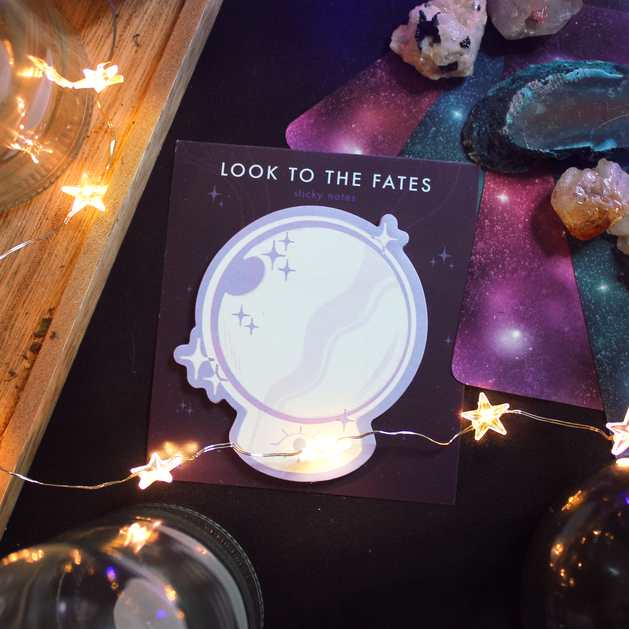 What destiny awaits you, hidden amongst cloudy crystal balls and cut between decks of tarot cards? Write down what questions you may have for the fates, your tabletop game patron, or any other-worldly guide (or, you know, a grocery list) on this 3x3", 30 sheet sticky note pad