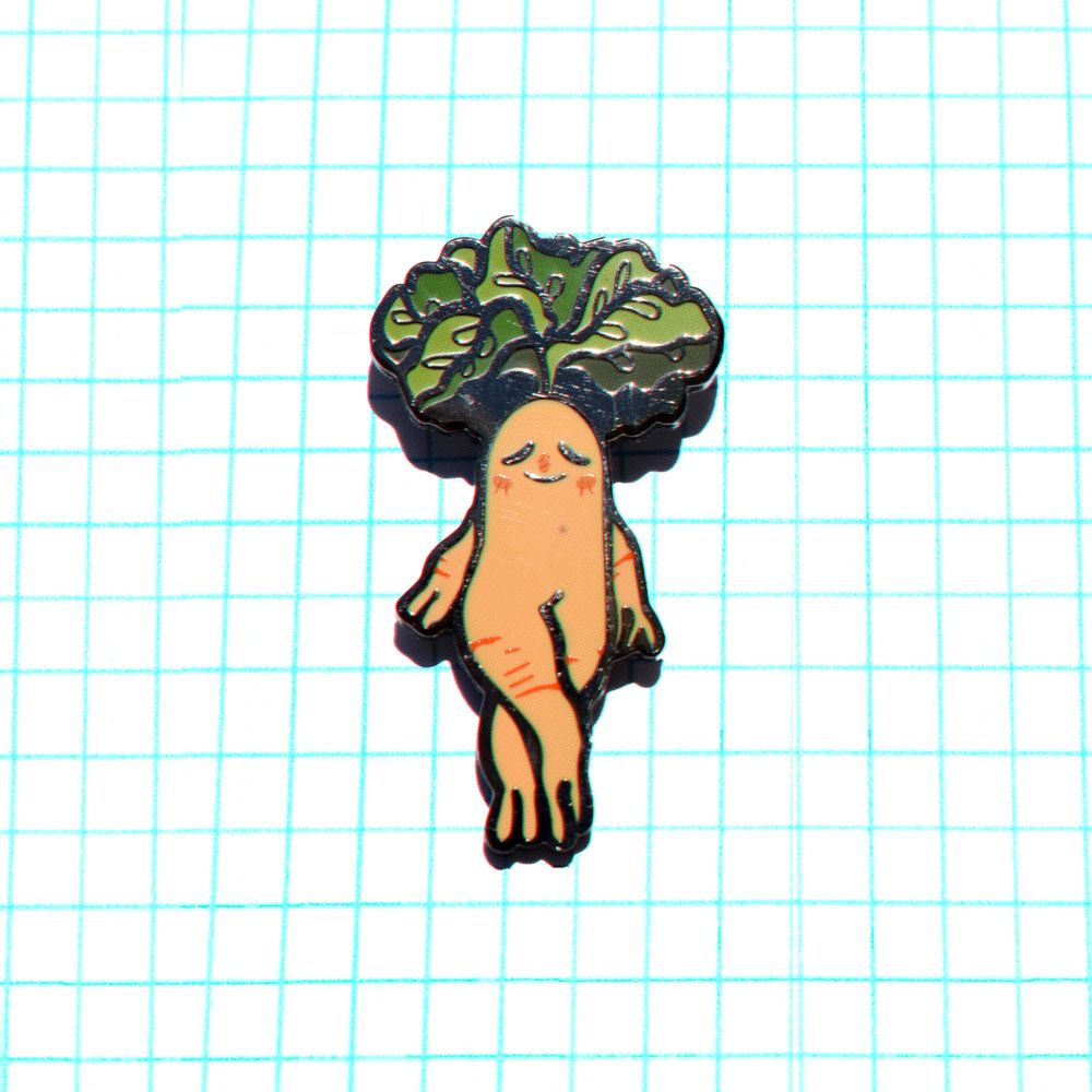 For the witchy-inclined and the green-thumbed, the scream of a mandrake is rightfully feared - but don't worry about this one! She's shy. These 1.25" hard enamel pins feature a layer of clear epoxy and screen printed details!
