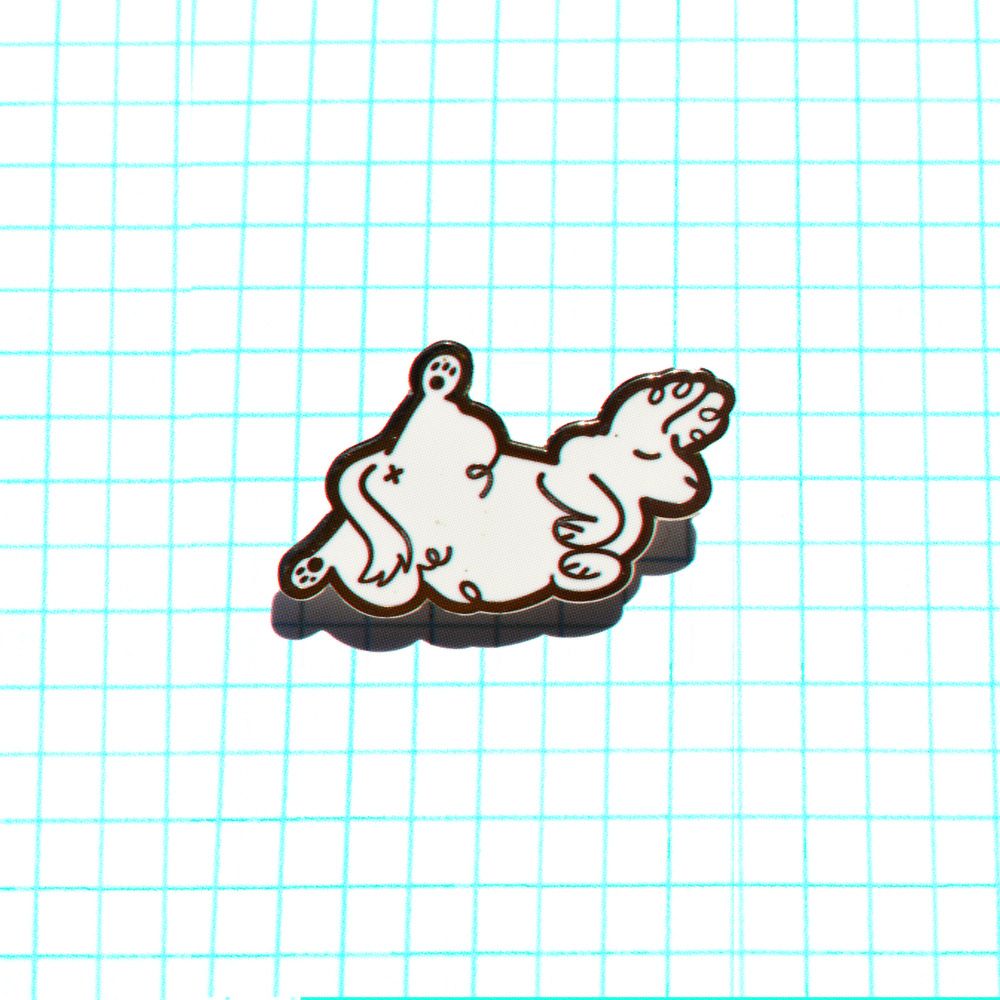 Just look at that little dog! Don't you want to take a nap, too? These 1.25" pins are gold plated hard enamel with two stud backings.