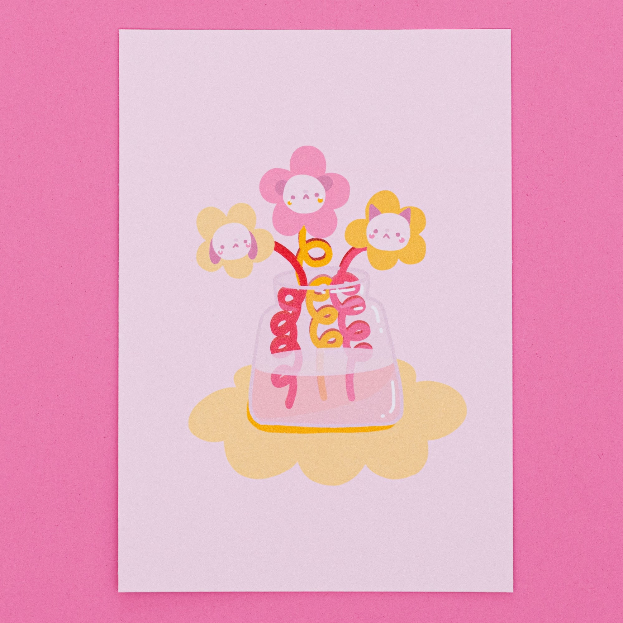 lil flower babies staying hydrated // Unframed, single sided post card print - printed in Melbourne using a Canon Pixma iP8760 on Epson Matte Archival Paper 189gsm. Please note colours on screen may vary slightly from the final printed artwork.