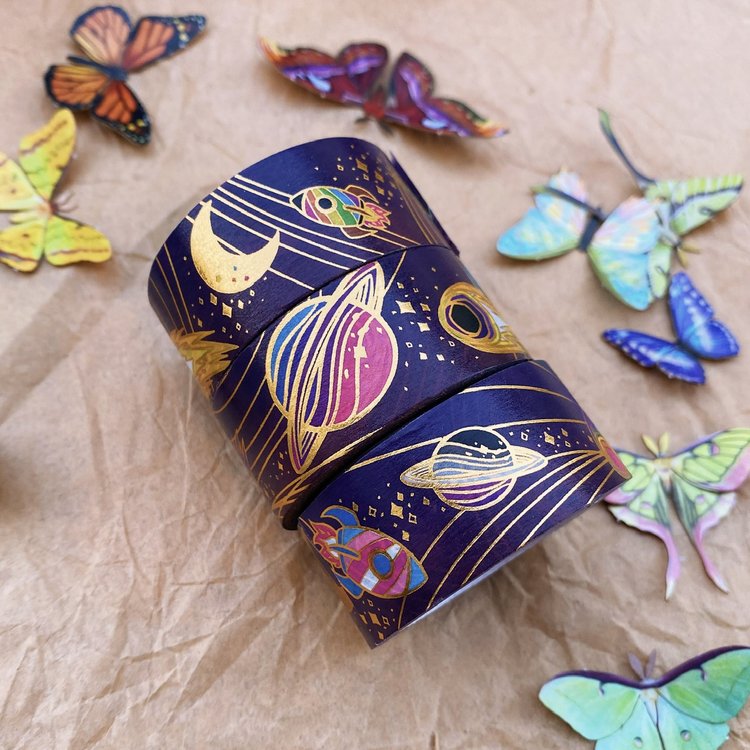 Printed paper tape with beautiful gold foil, perfect for any time you’d use regular tape, only cuter! Use it in planners, journals, scrapbooks, or for sealing and decorating mail. Easily peels off and leaves minimal residue on most surfaces. A perfect gift for the stationery lover in your life - or you! Note: foil tape may be less adhesive on paper surface, but sticks to plastic and glass better than regular paper tape!