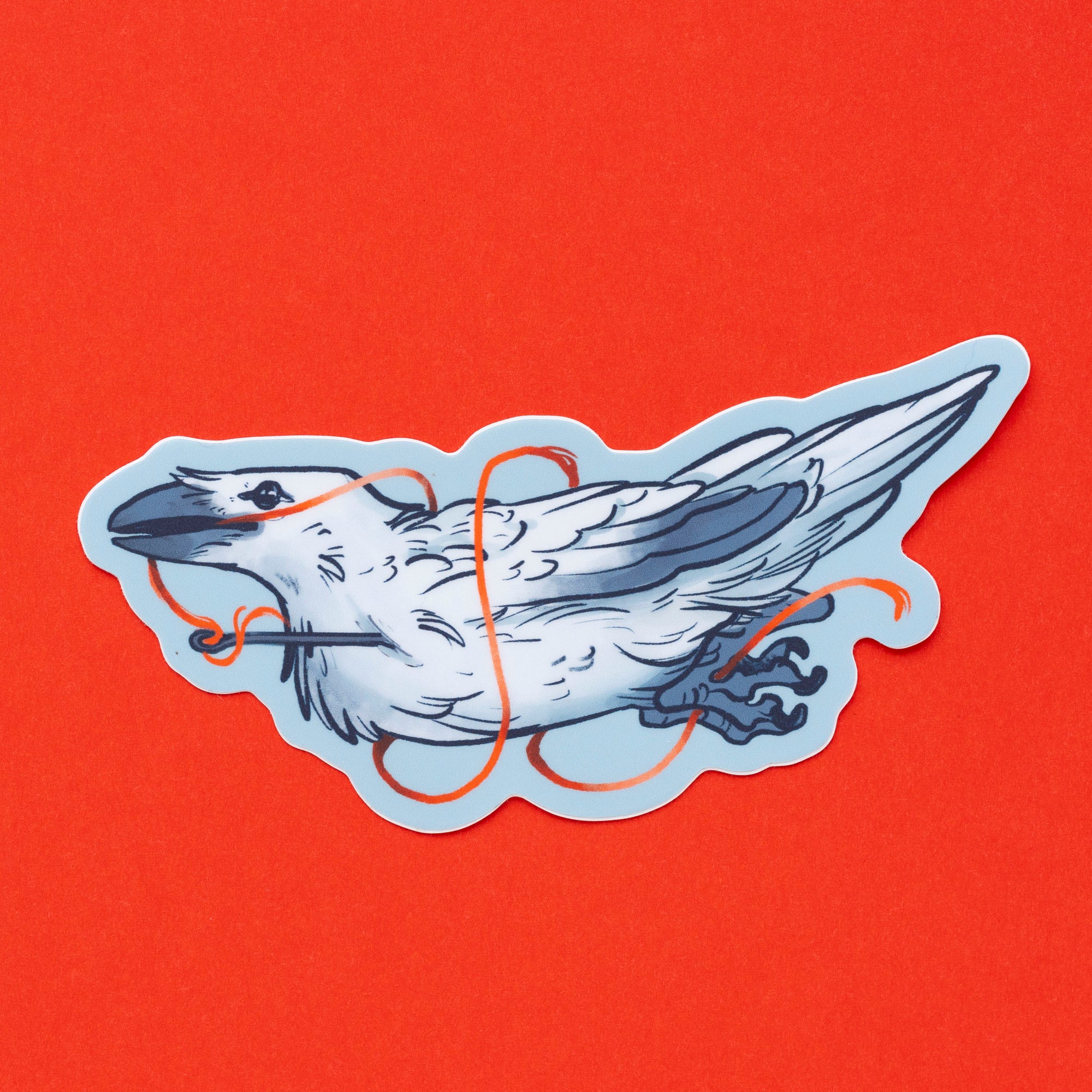 Themed around a personal character- a raven that bears a red thread of fate. This durable vinyl sticker is great for cars, water bottles, laptops, your fridge if you're feeling it, or a sewing box.