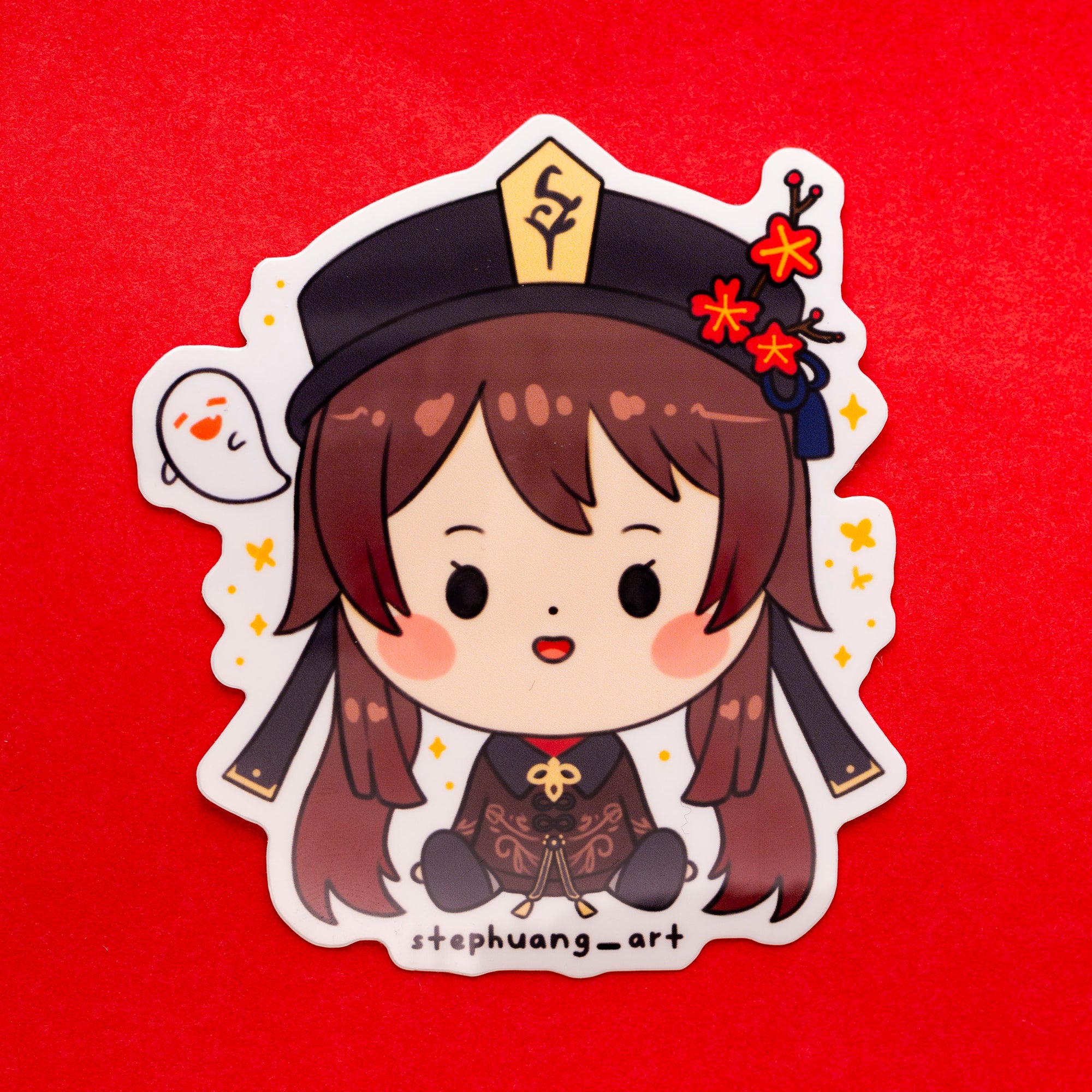 Hu Tao from Genshin Impact drawn in a cute chibi style by Stephanie Huang