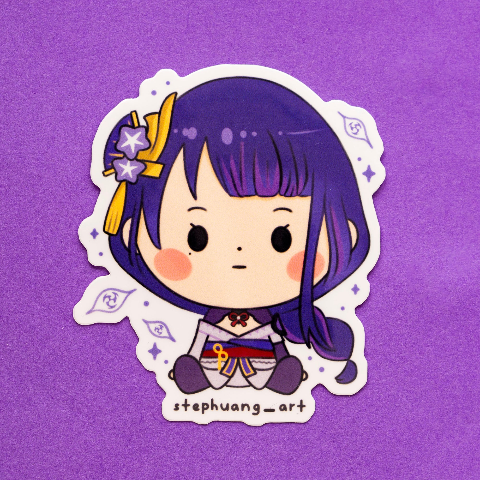 Raiden Shogun/Ei from Genshin Impact drawn in a cute chibi style by Stephanie Huang