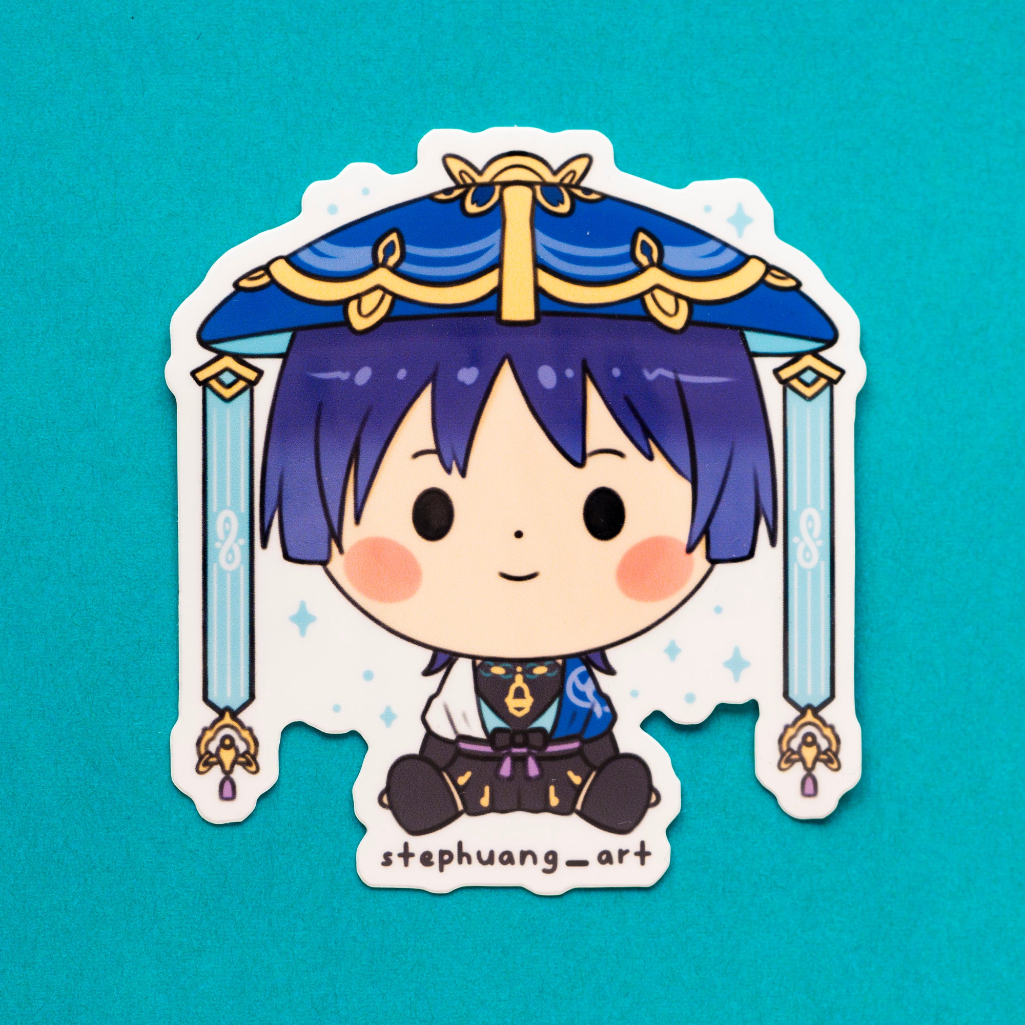 Scaramouche/Wanderer from Genshin Impact drawn in a cute chibi style by Stephanie Huang