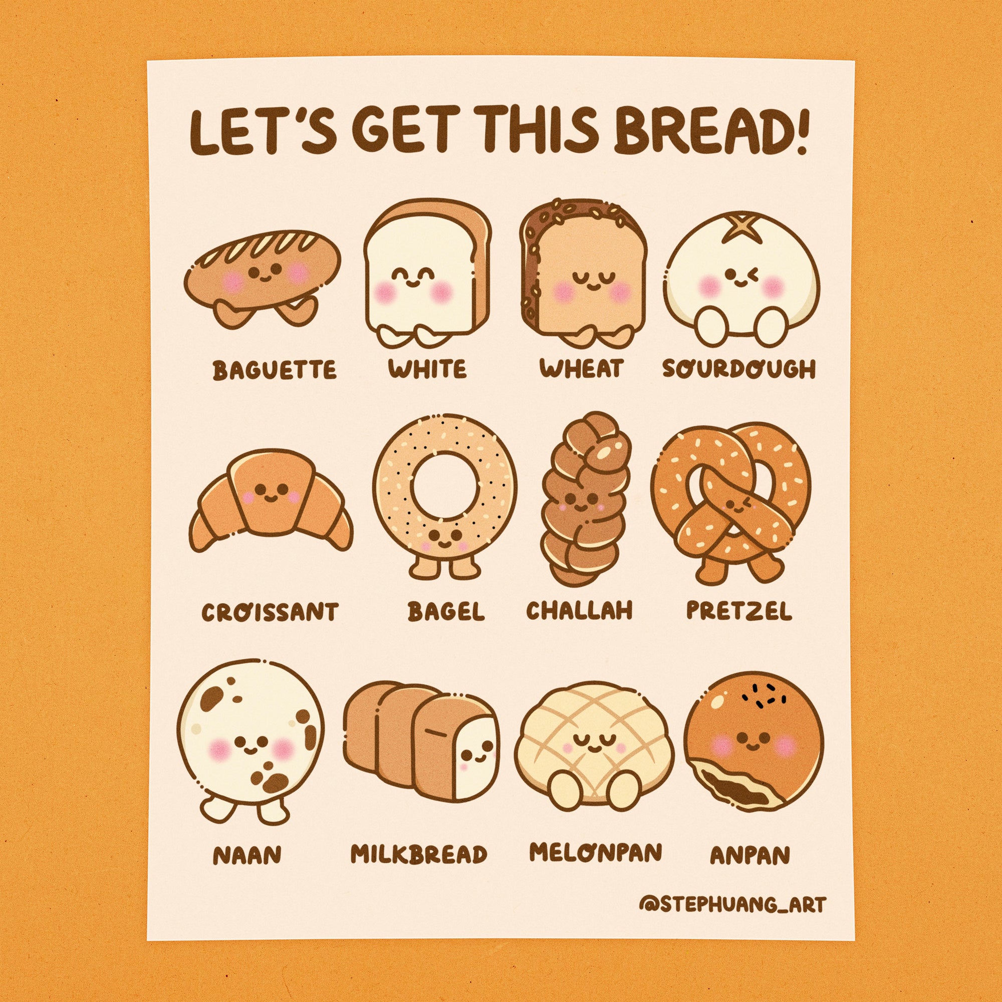 An illustrated poster of different types of bread and a reminder to get that bread! $$$ Perfect for any bread lover.