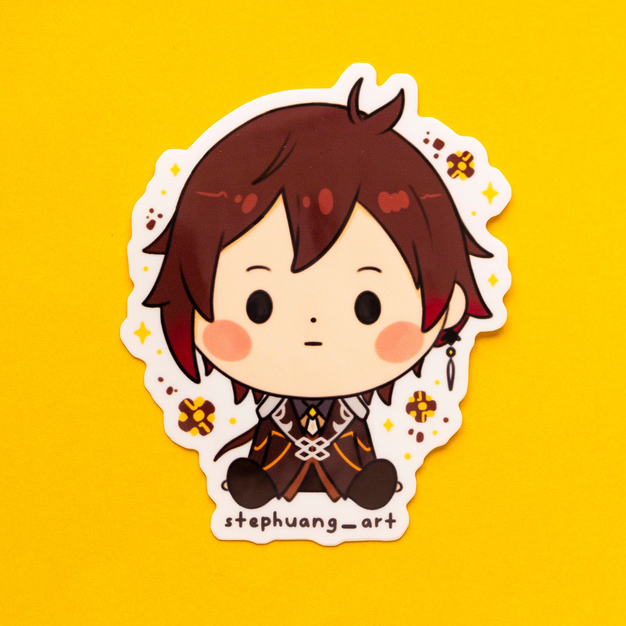 Zhongli from Genshin Impact drawn in a cute chibi style by Stephanie Huang